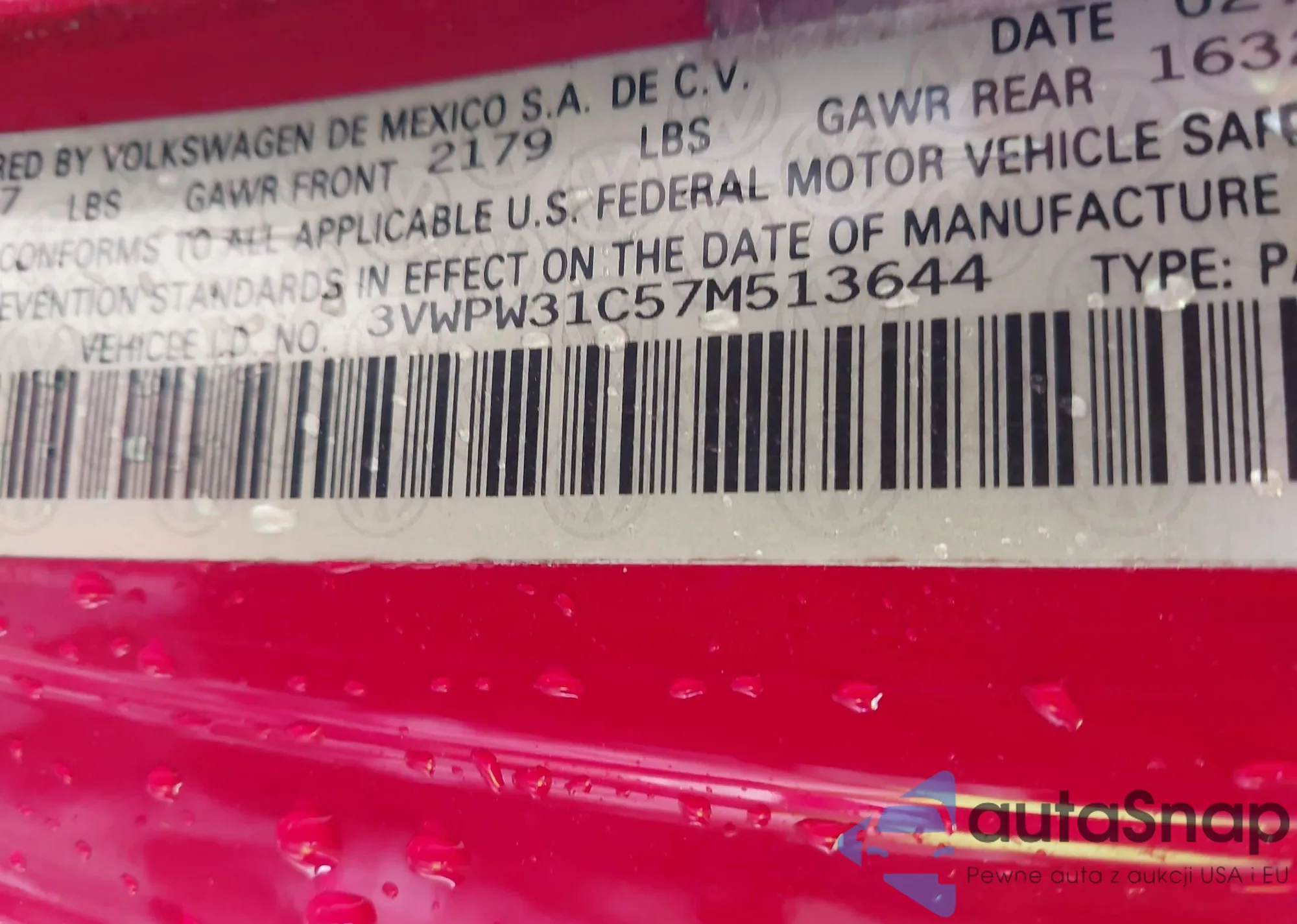 VIN: 3VWPW31C57M513644