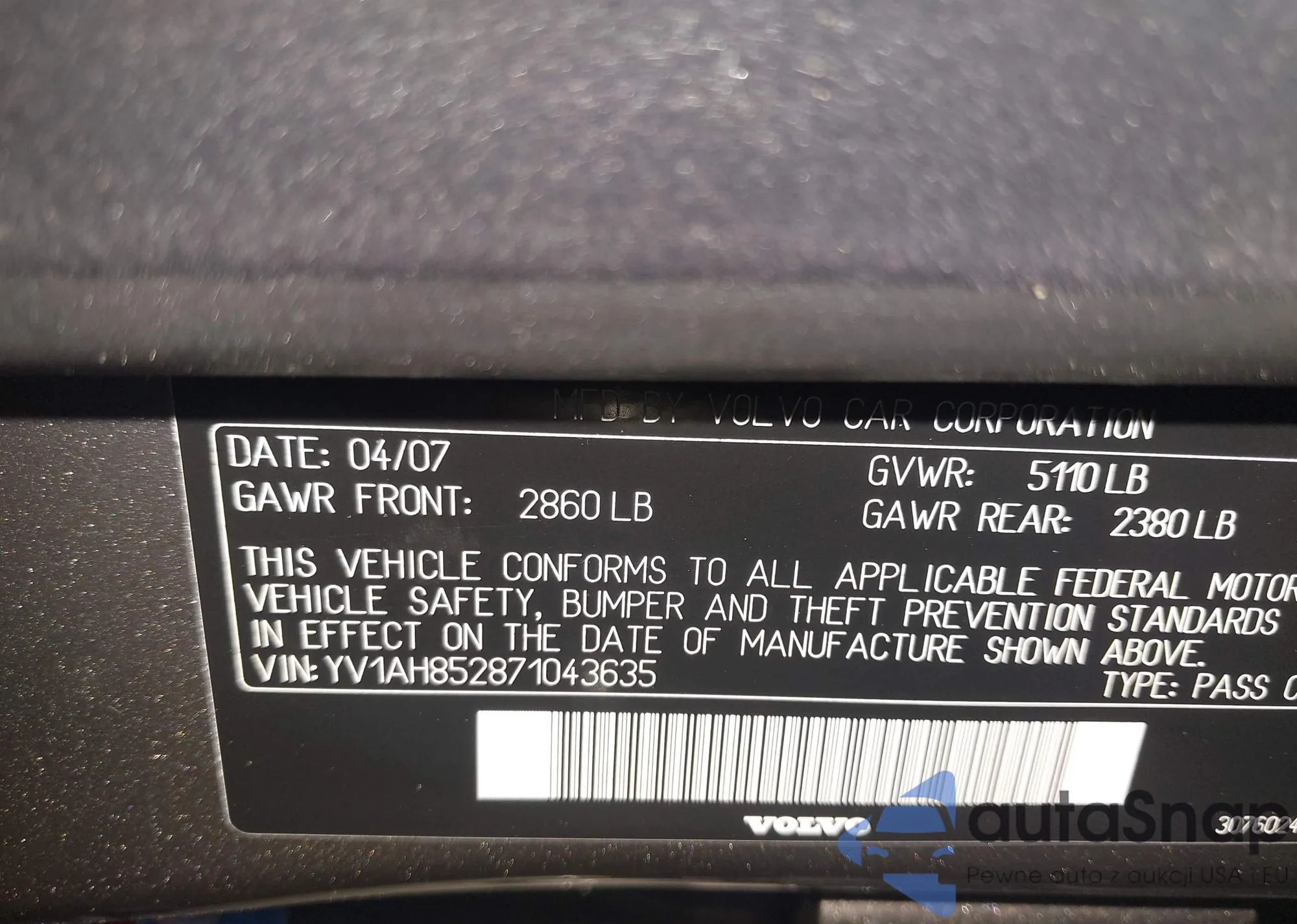 VIN: YV1AH852871043635