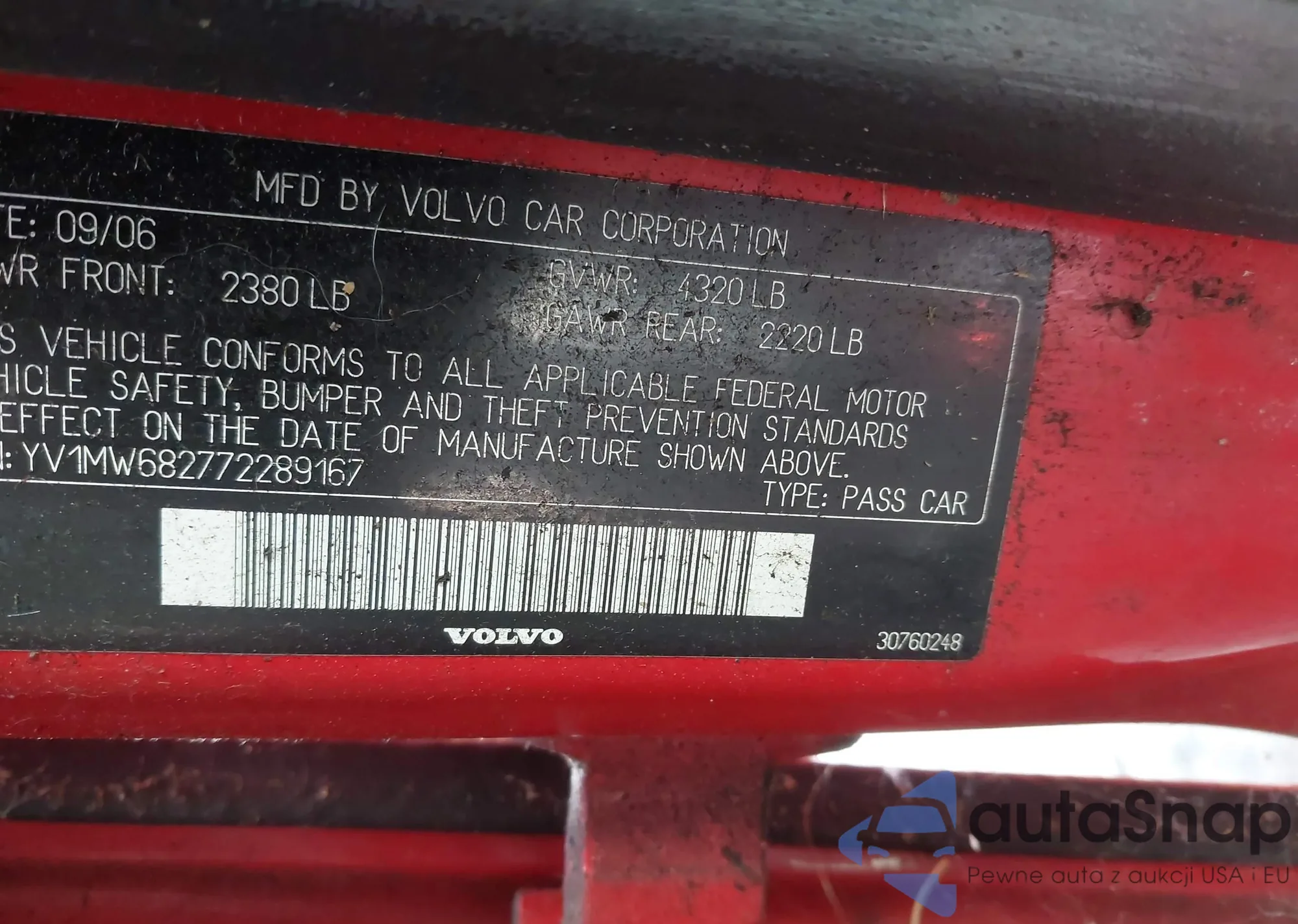 VIN: YV1MW682772289167