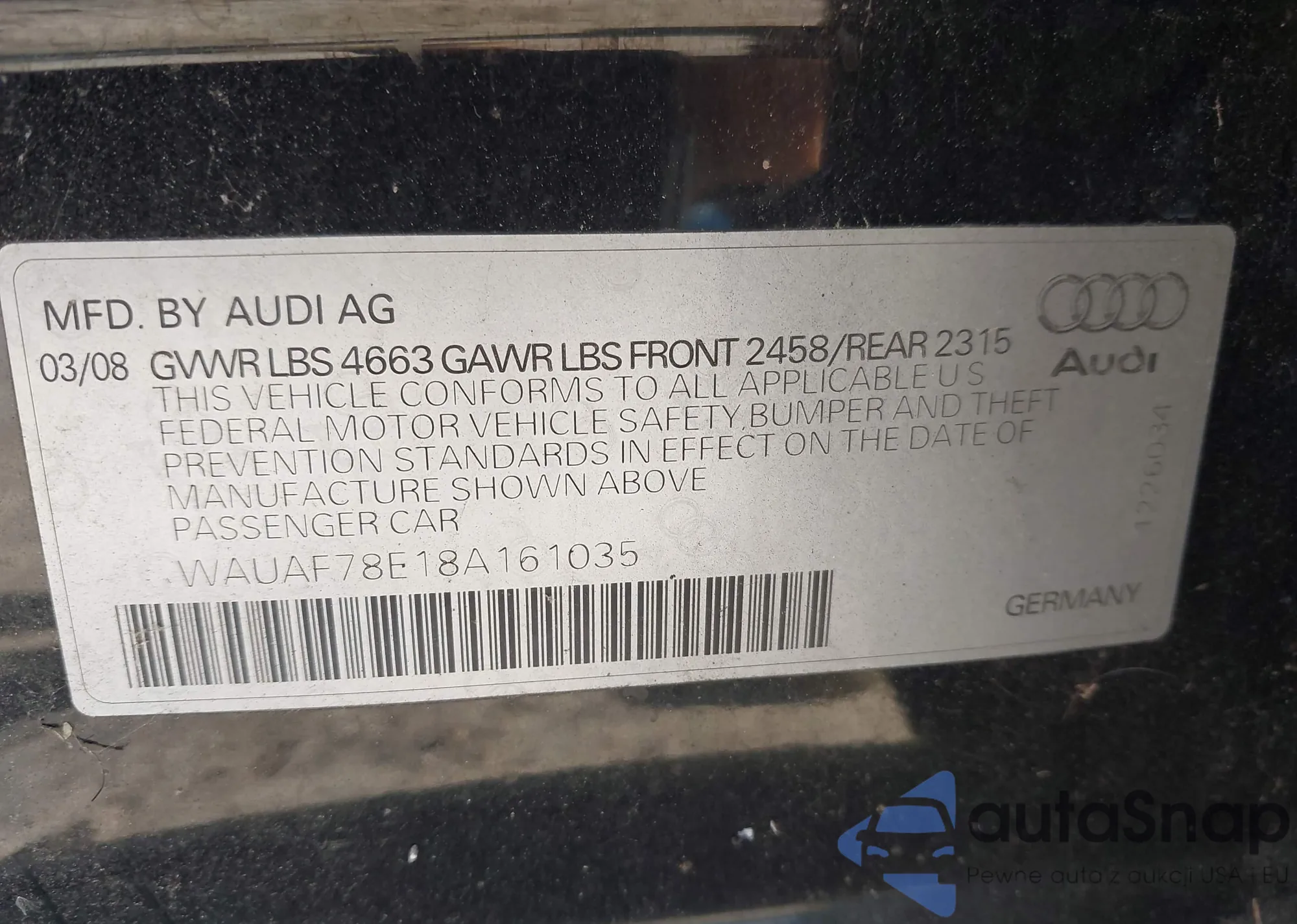 VIN: WAUAF78E18A161035