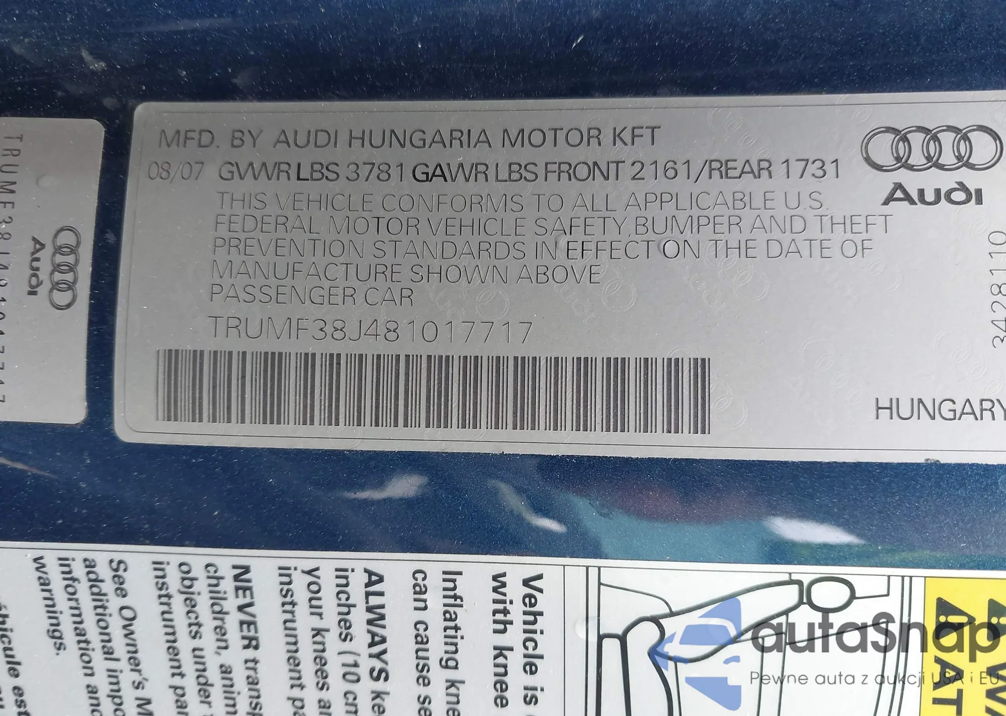 VIN: TRUMF38J481017717