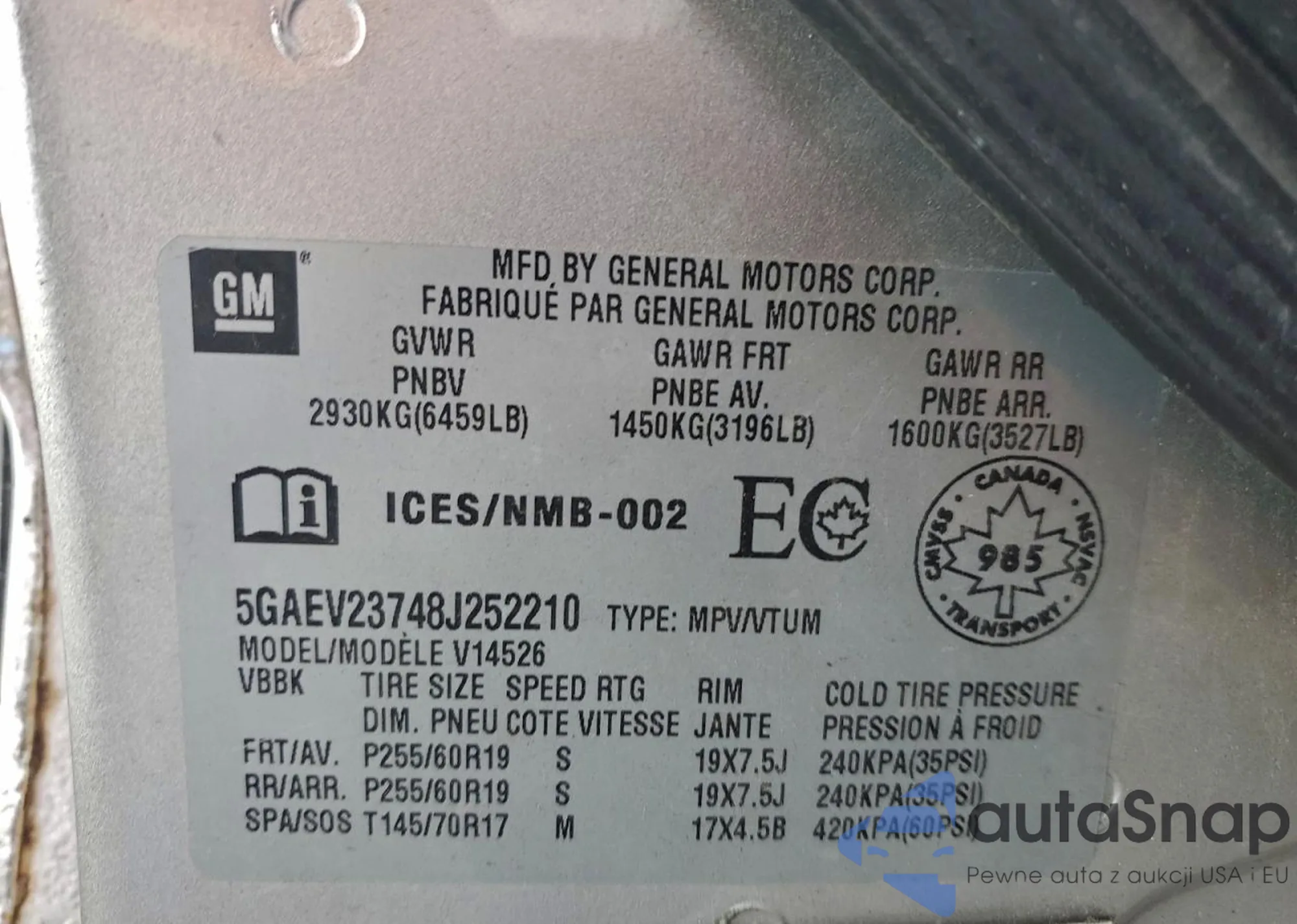 VIN: 5GAEV23748J252210