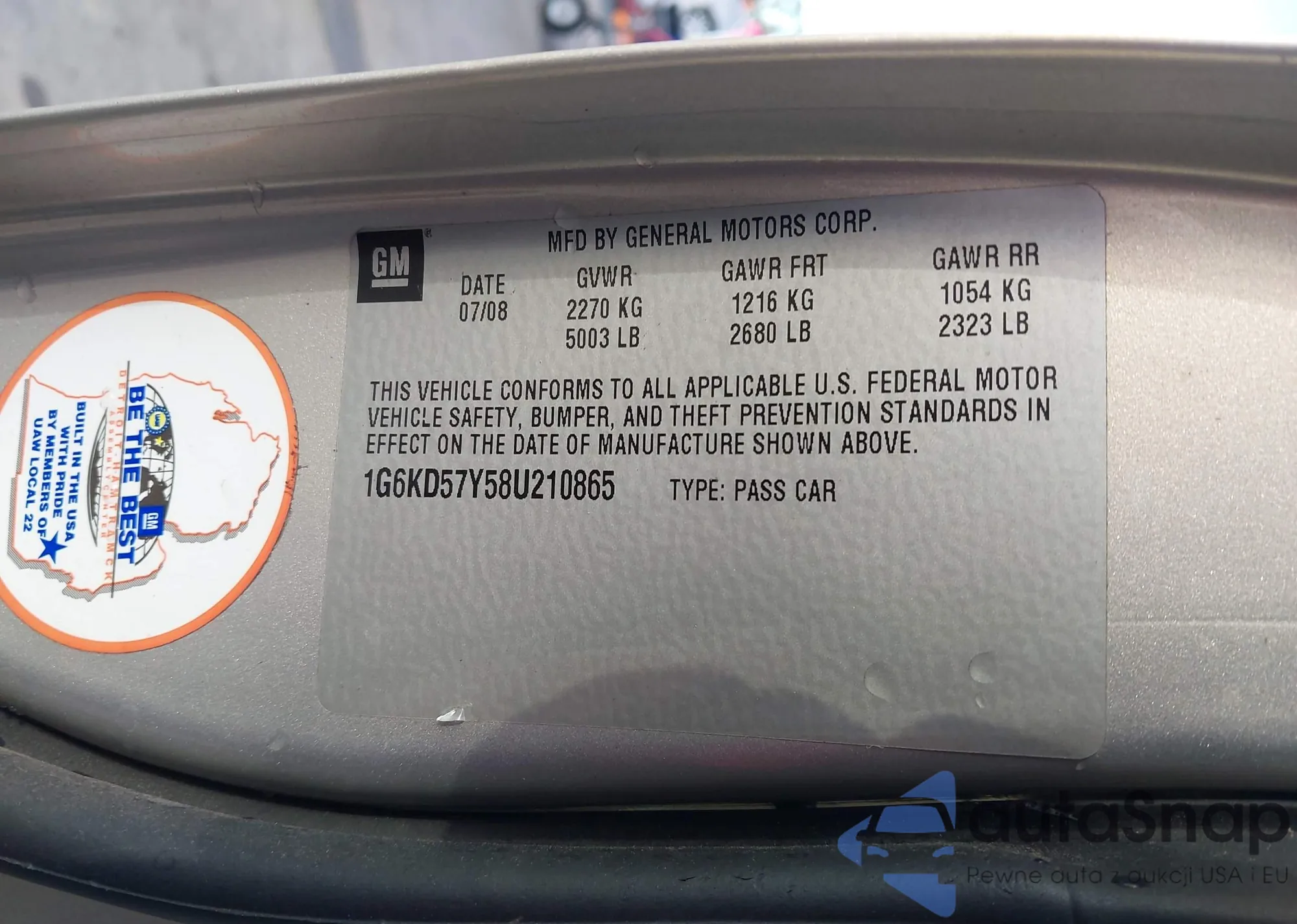 Samochód Cadillac DTS 2008 (VIN 1G6KD57Y58U210865) nie był wcześniej licytowany. Dokumenty są czyste, przebieg odpowiada lub jest niższy niż średnia rynku. Sprzedaje go firma ubezpieczeniowa – polecamy zakup. Dostawa do portu zajmie ok. 6–8 tygodni.