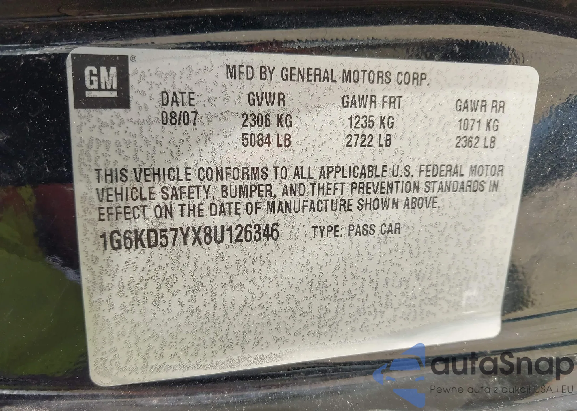 VIN: 1G6KD57YX8U126346