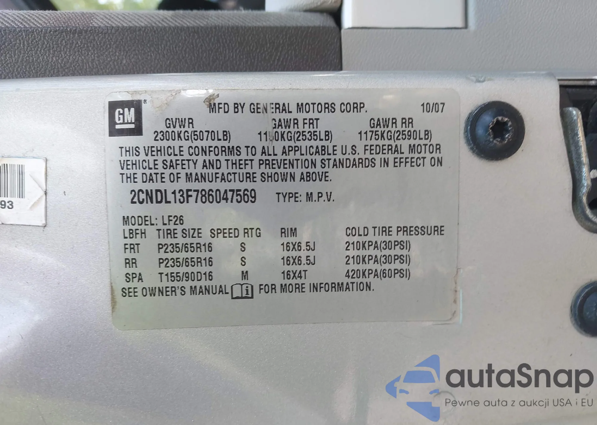VIN: 2CNDL13F786047569