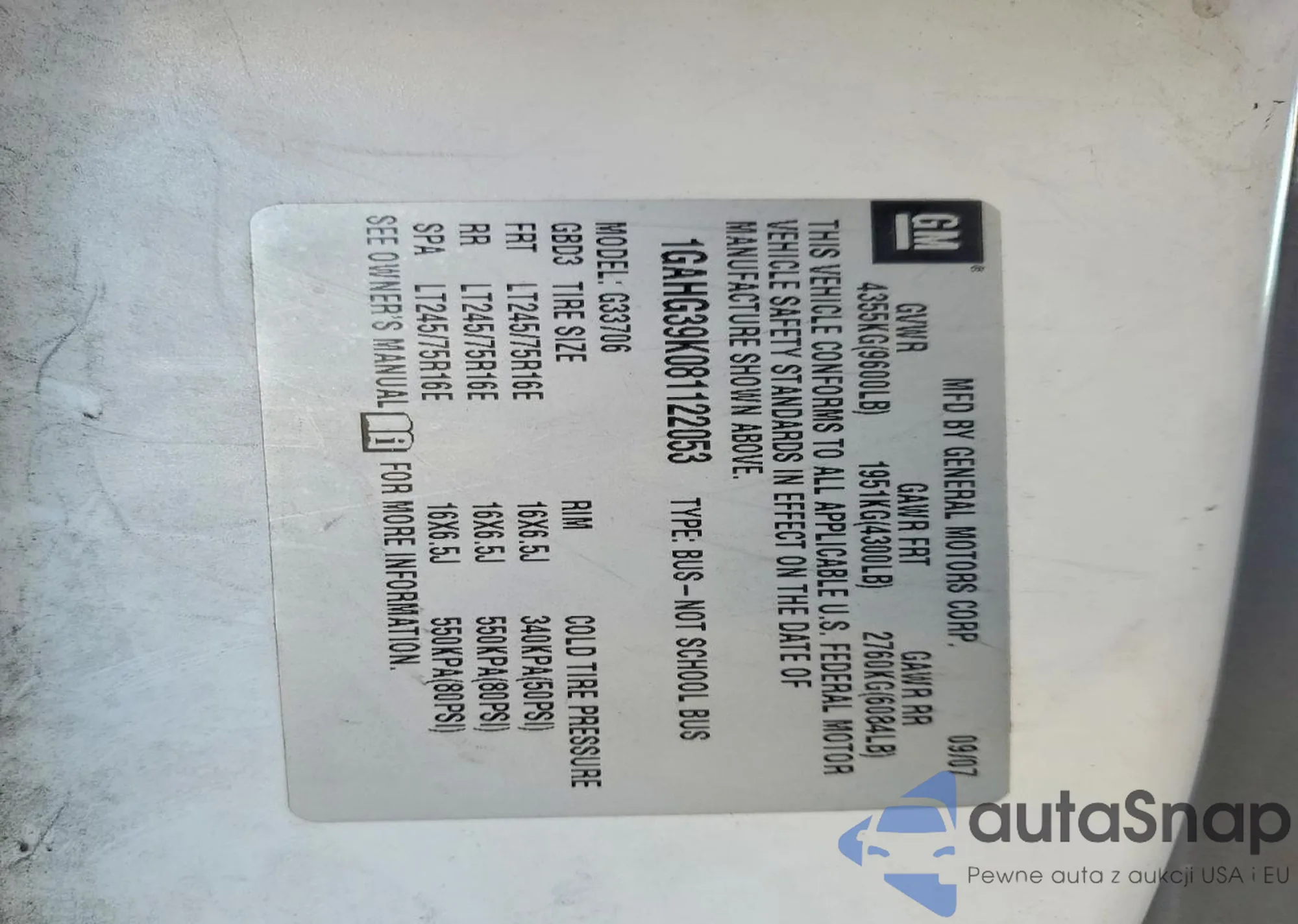 VIN: 1GAHG39K081122053