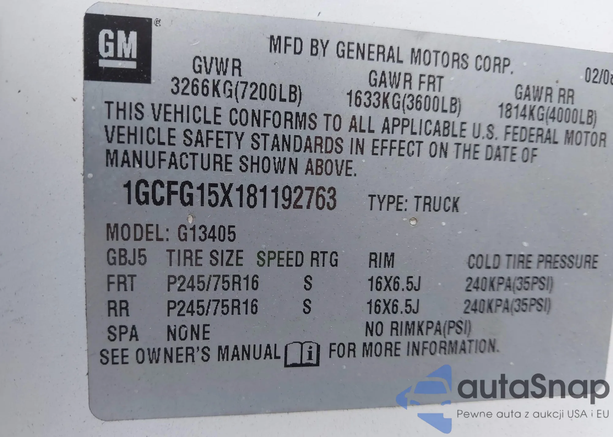 VIN: 1GCFG15X181192763