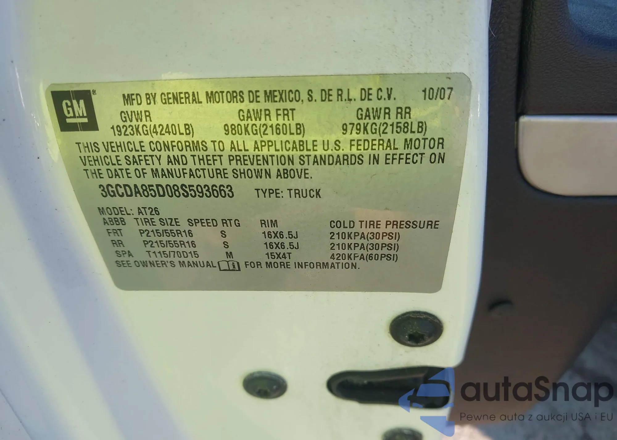 VIN: 3GCDA85D08S593663