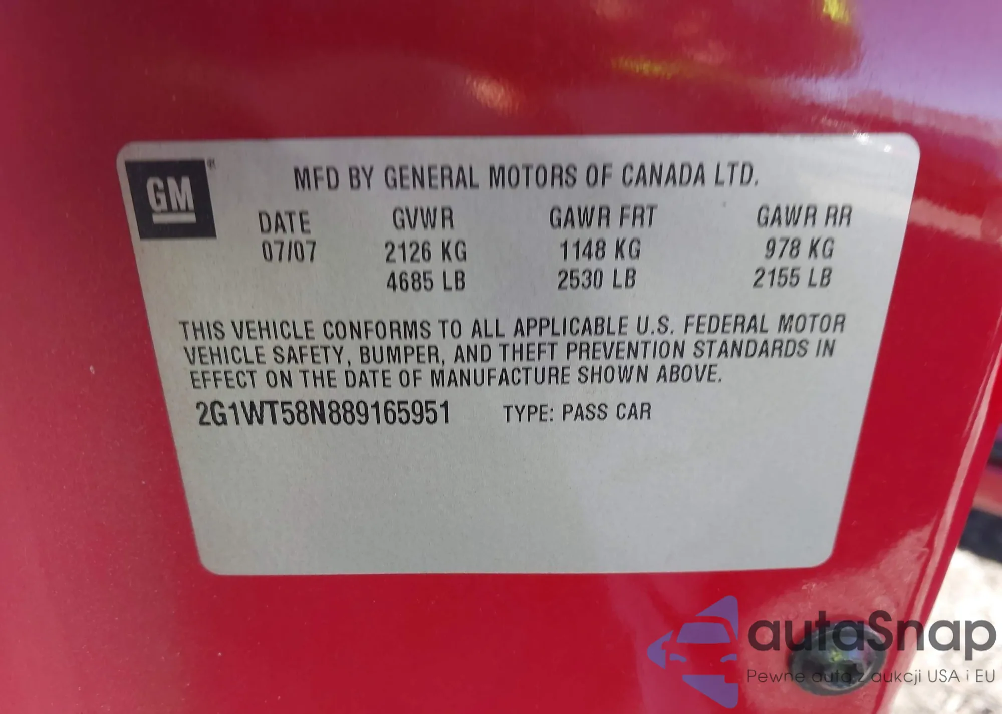 Samochód Chevrolet Impala 2008 (VIN 2G1WT58N889165951) nie był wcześniej licytowany. Dokumenty są czyste, przebieg odpowiada lub jest niższy niż średnia rynku. Sprzedaje go firma ubezpieczeniowa – polecamy zakup. Dostawa do portu zajmie ok. 6–8 tygodni.