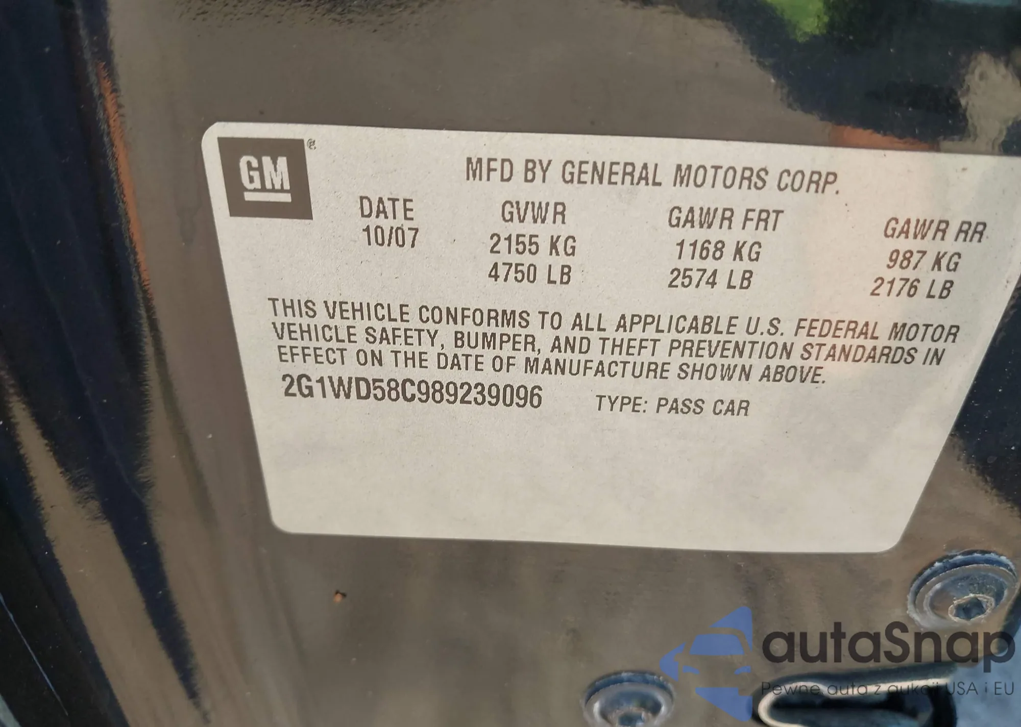 VIN: 2G1WD58C989239096