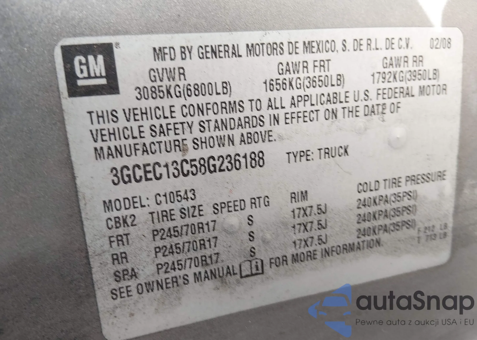 VIN: 3GCEC13C58G236188