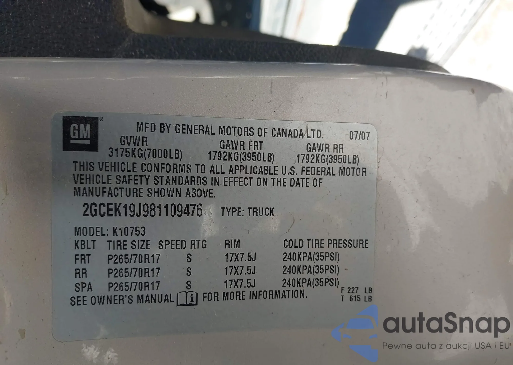 VIN: 2GCEK19J981109476