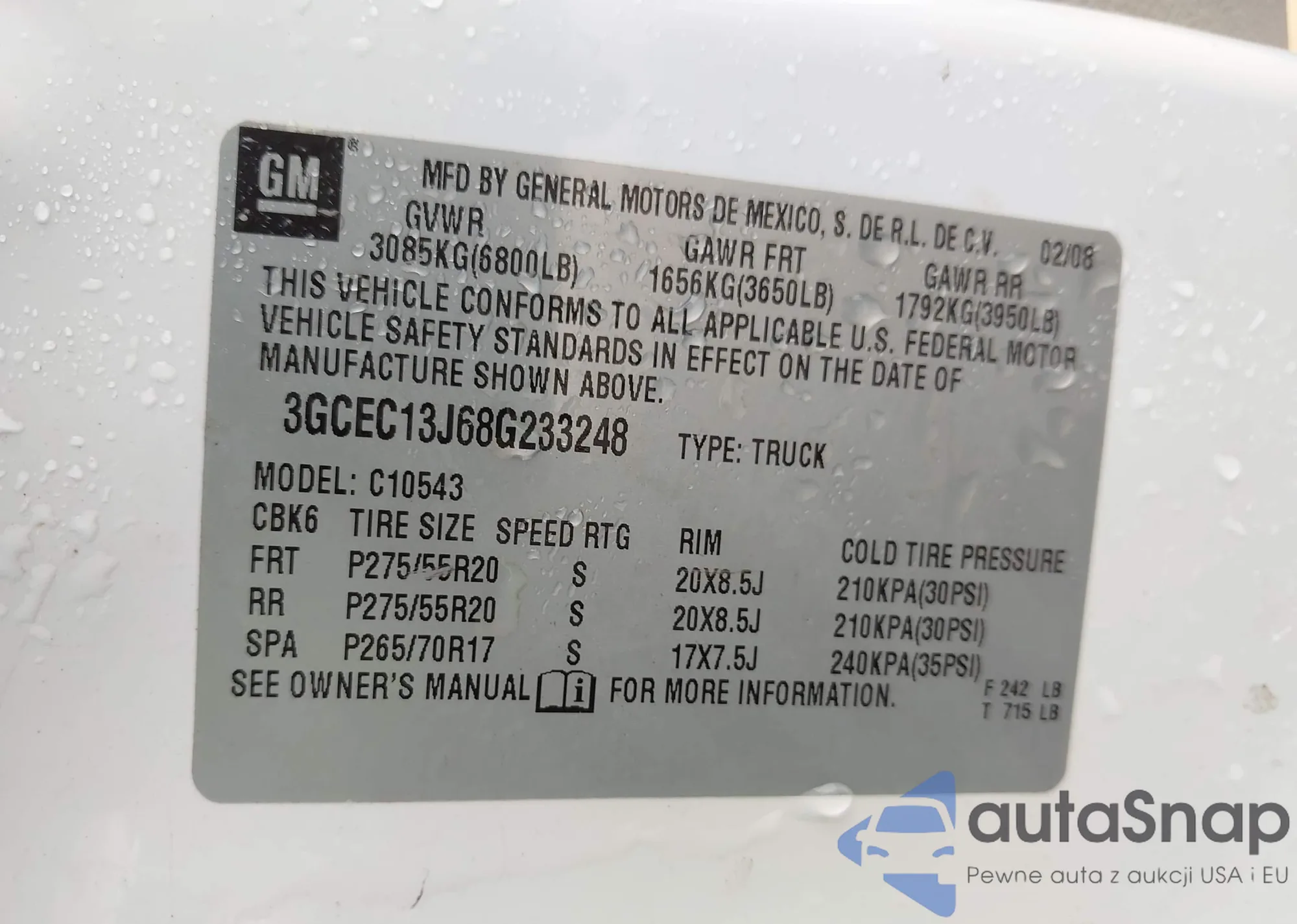 VIN: 3GCEC13J68G233248
