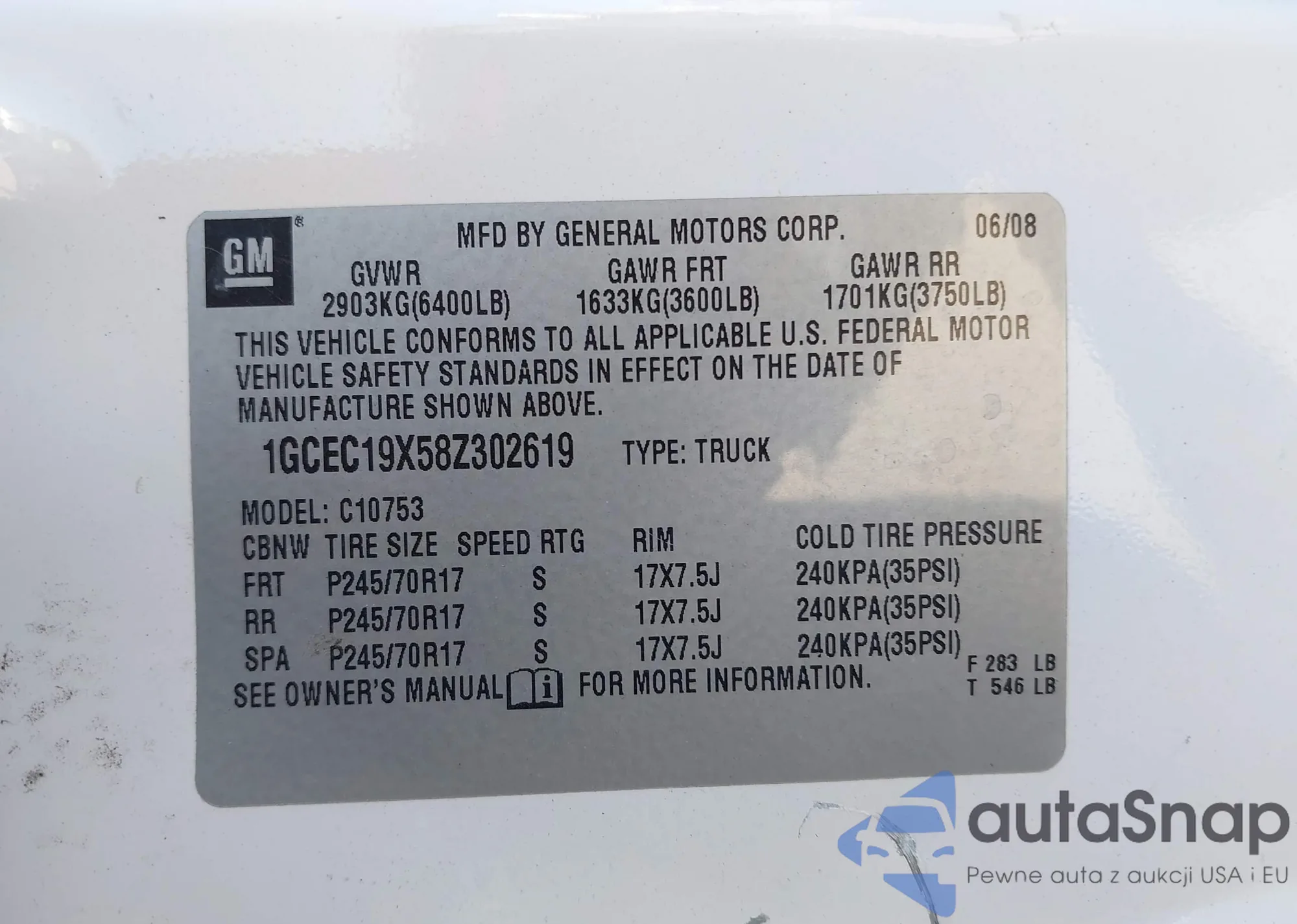 VIN: 1GCEC19X58Z302619