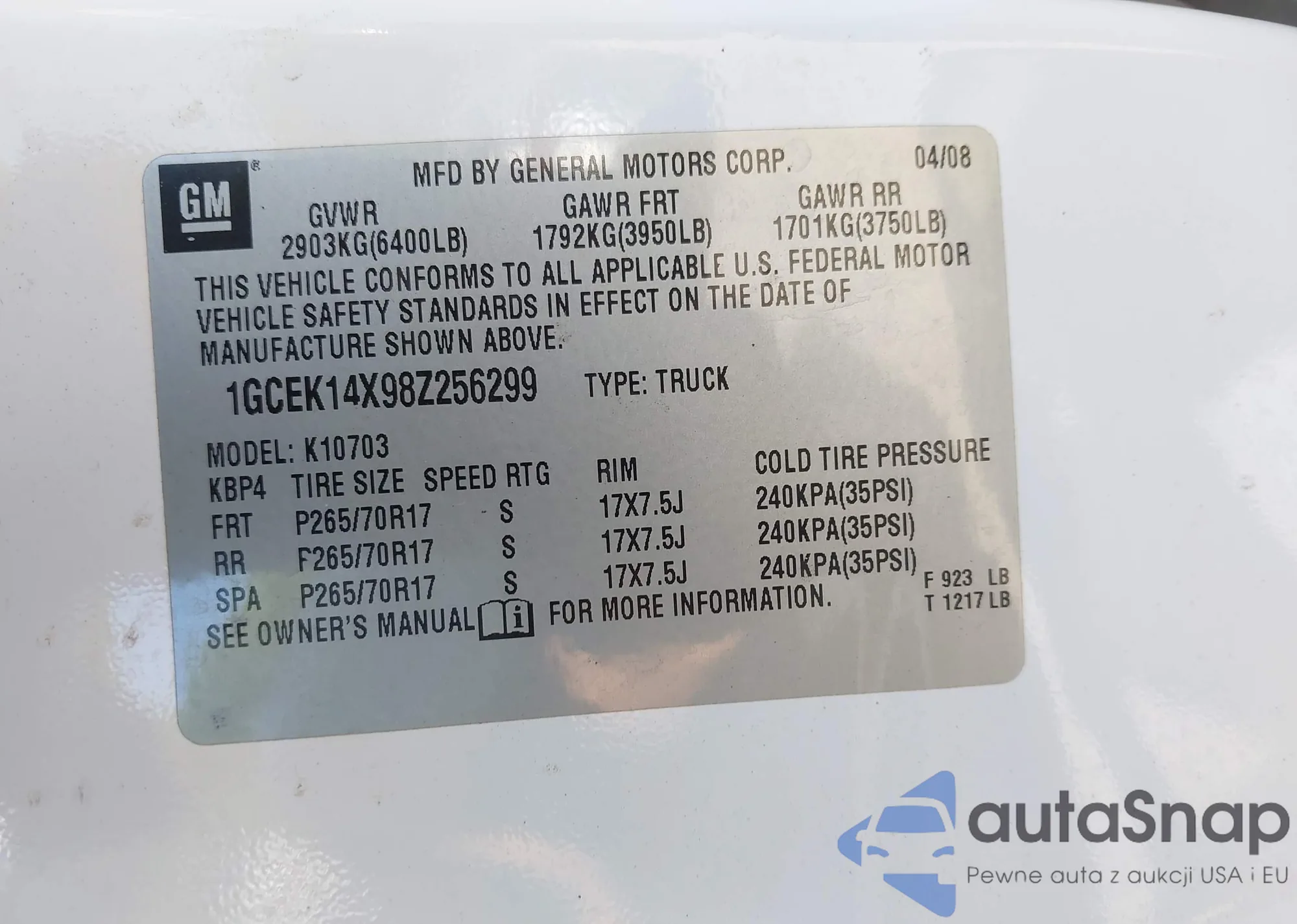 VIN: 1GCEK14X98Z256299