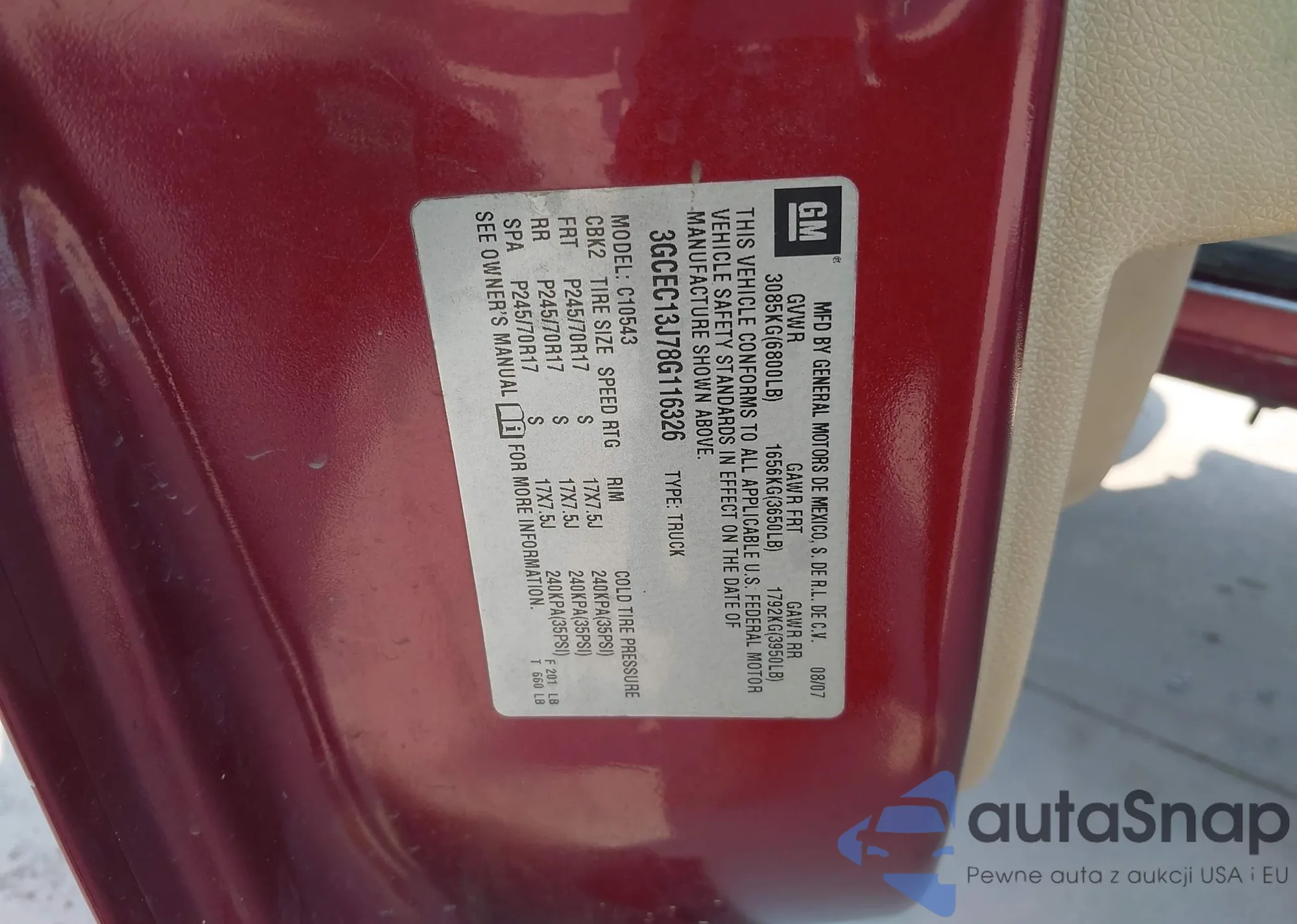 VIN: 3GCEC13J78G116326