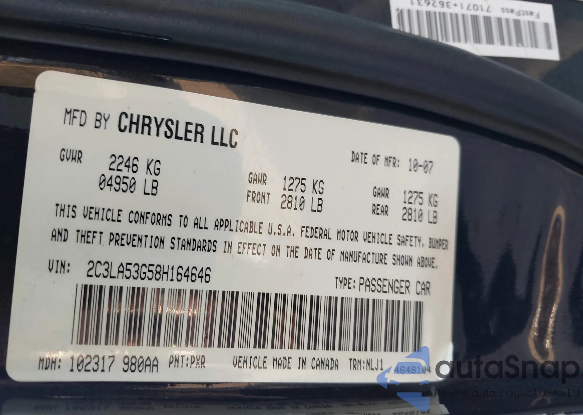 • VIN: 2C3LA53G58H164646