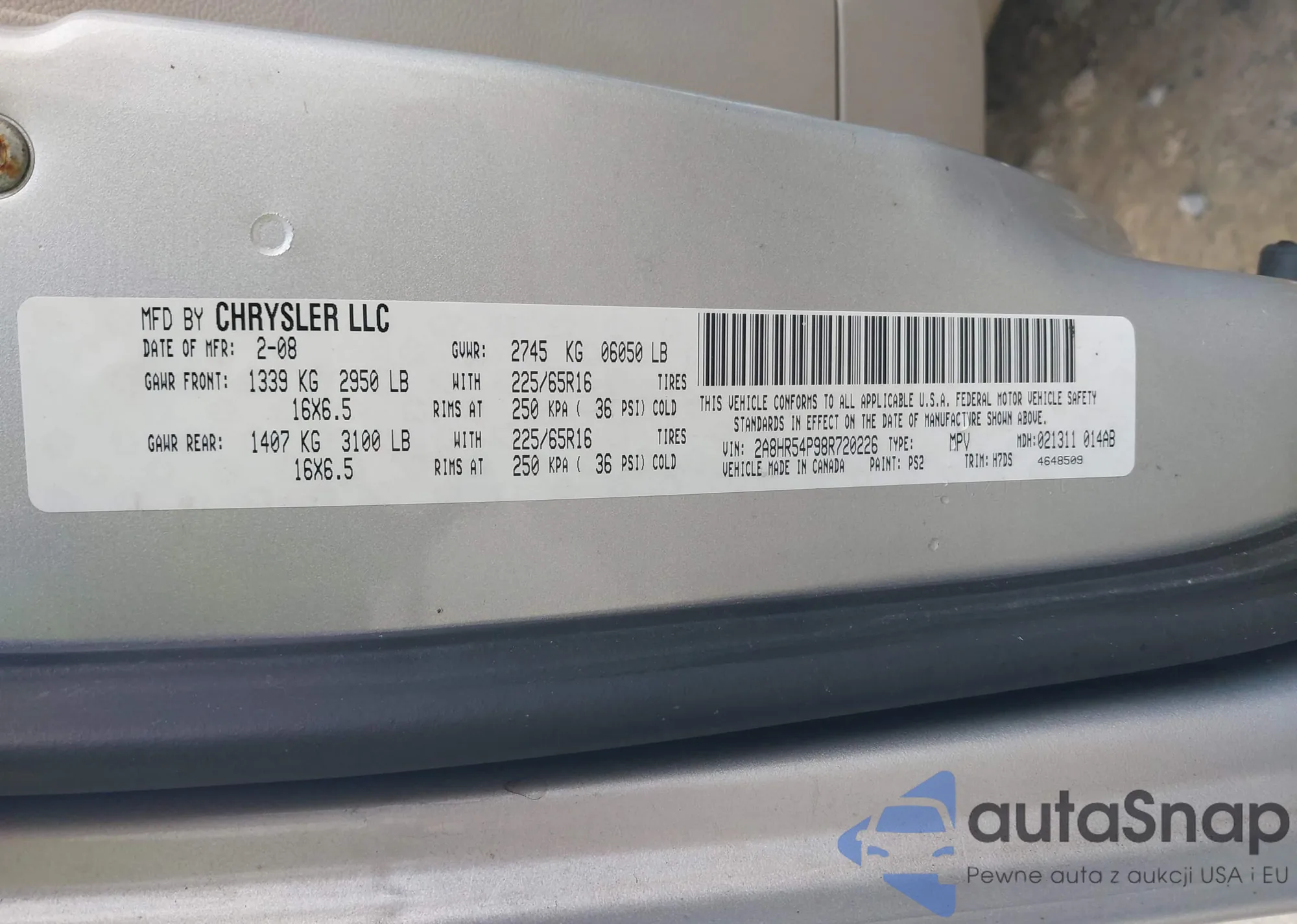 Samochód Chrysler Town & Country 2008 (VIN 2A8HR54P98R720226) sprzedaje go niezweryfikowany sprzedawca. Zalecamy raport Carfax i potwierdzenie możliwości rejestracji pojazdu przed zakupem.