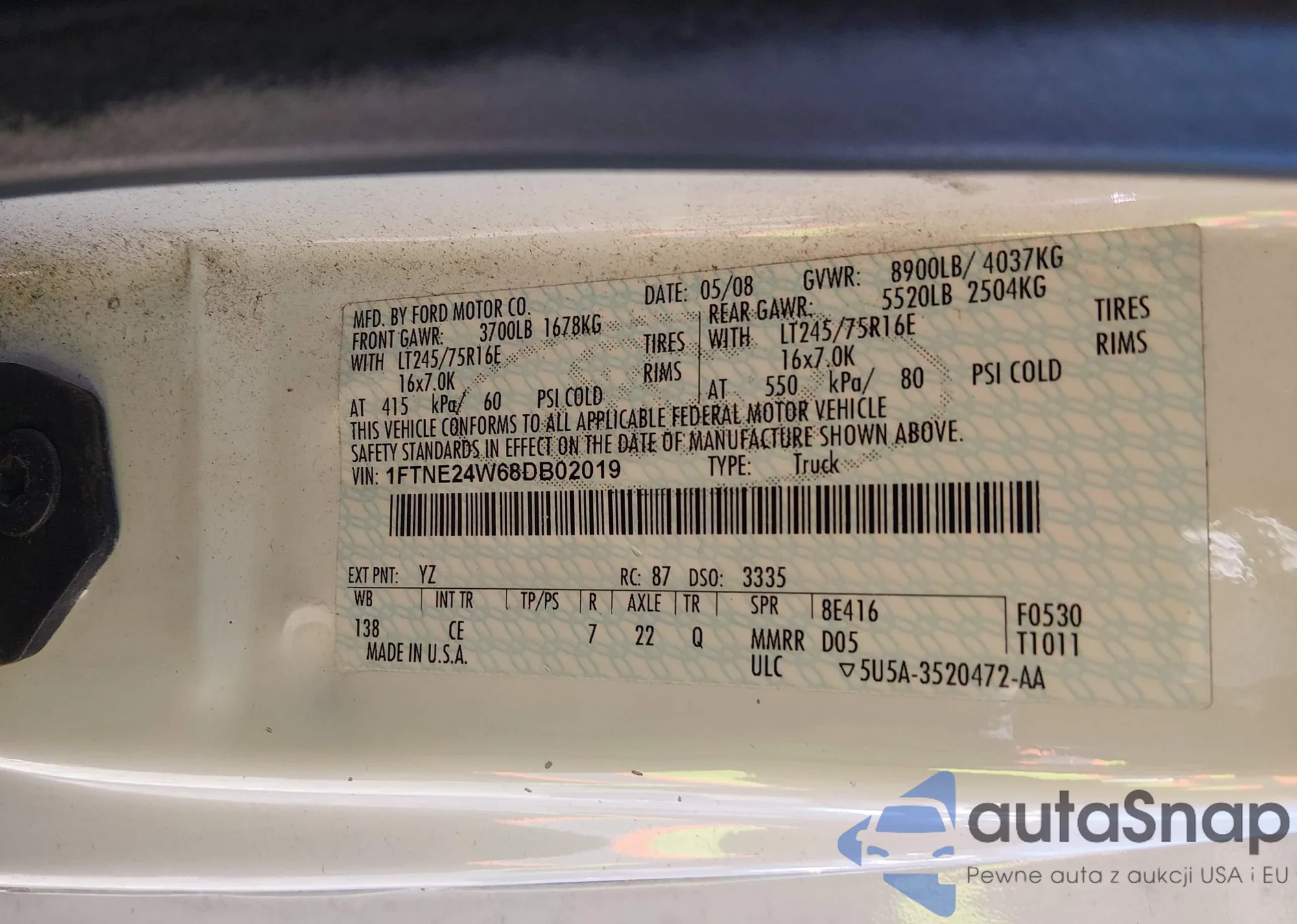 Samochód Ford Econoline 2008 (VIN 1FTNE24W68DB02019) sprzedaje go niezweryfikowany sprzedawca. Zalecamy raport Carfax i potwierdzenie możliwości rejestracji pojazdu przed zakupem.