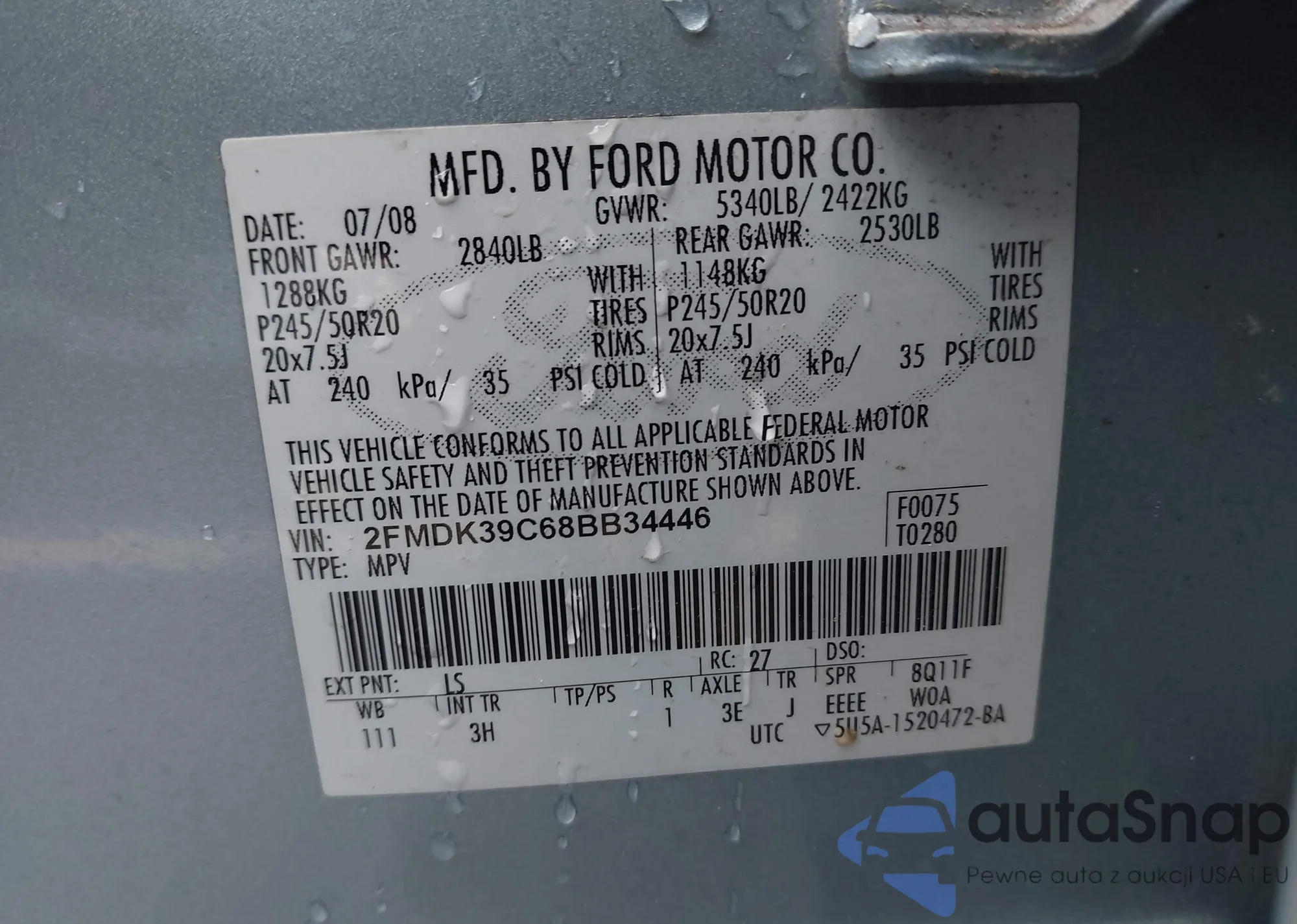 Samochód Ford Edge 2008 (VIN 2FMDK39C68BB34446) nie był wcześniej licytowany. Dokumenty są czyste, przebieg odpowiada lub jest niższy niż średnia rynku. Sprzedaje go firma ubezpieczeniowa – polecamy zakup. Dostawa do portu zajmie ok. 6–8 tygodni.
