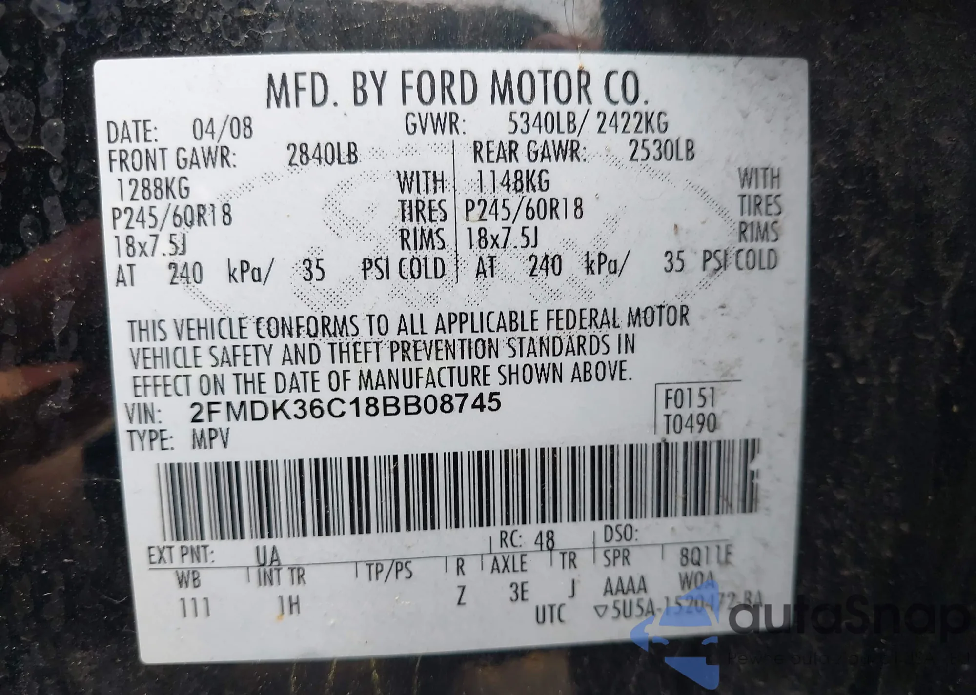 VIN: 2FMDK36C18BB08745