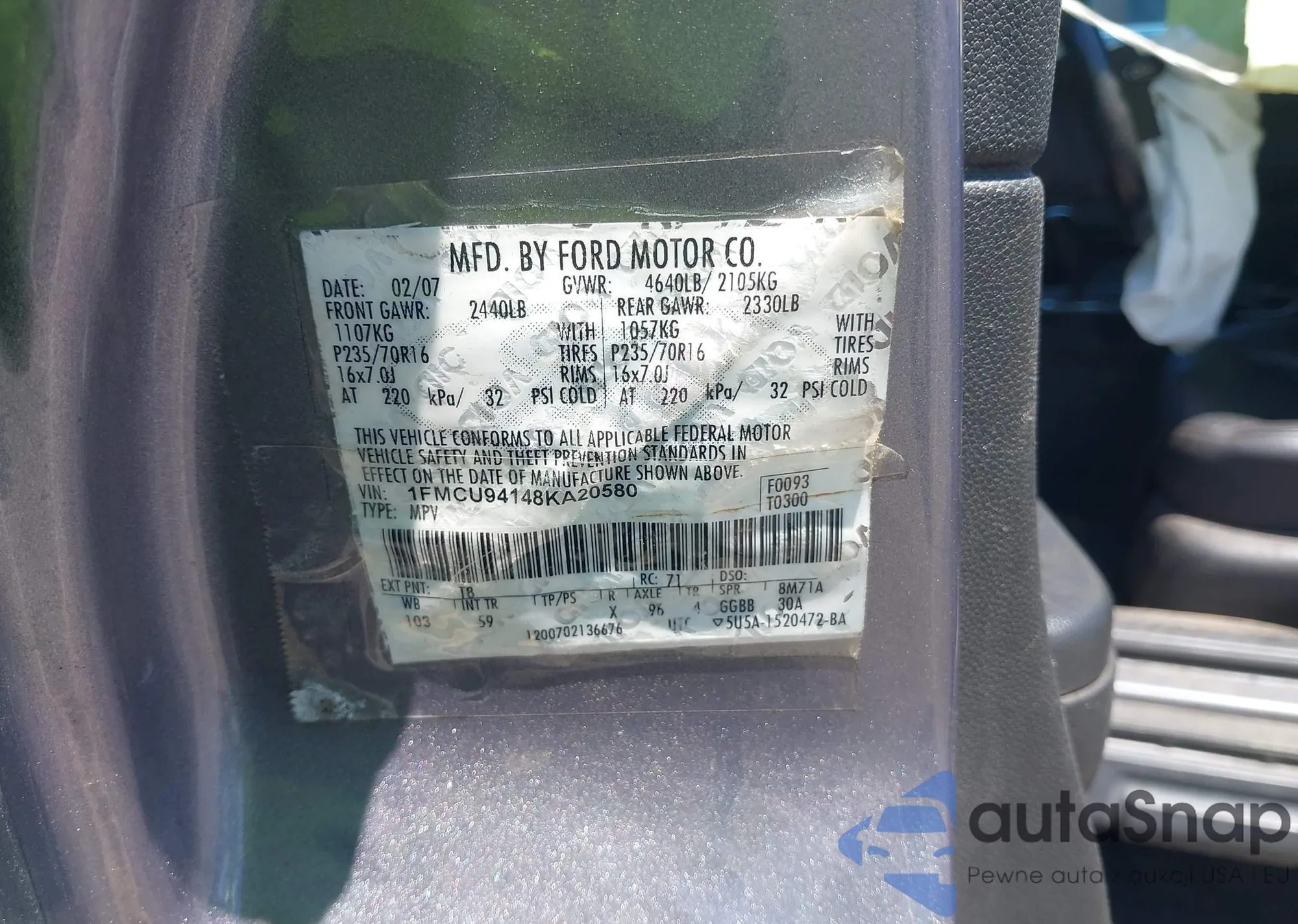 VIN: 1FMCU94148KA20580