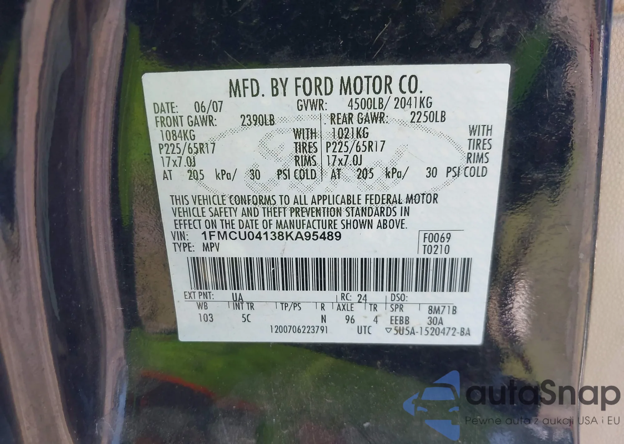 VIN: 1FMCU04138KA95489