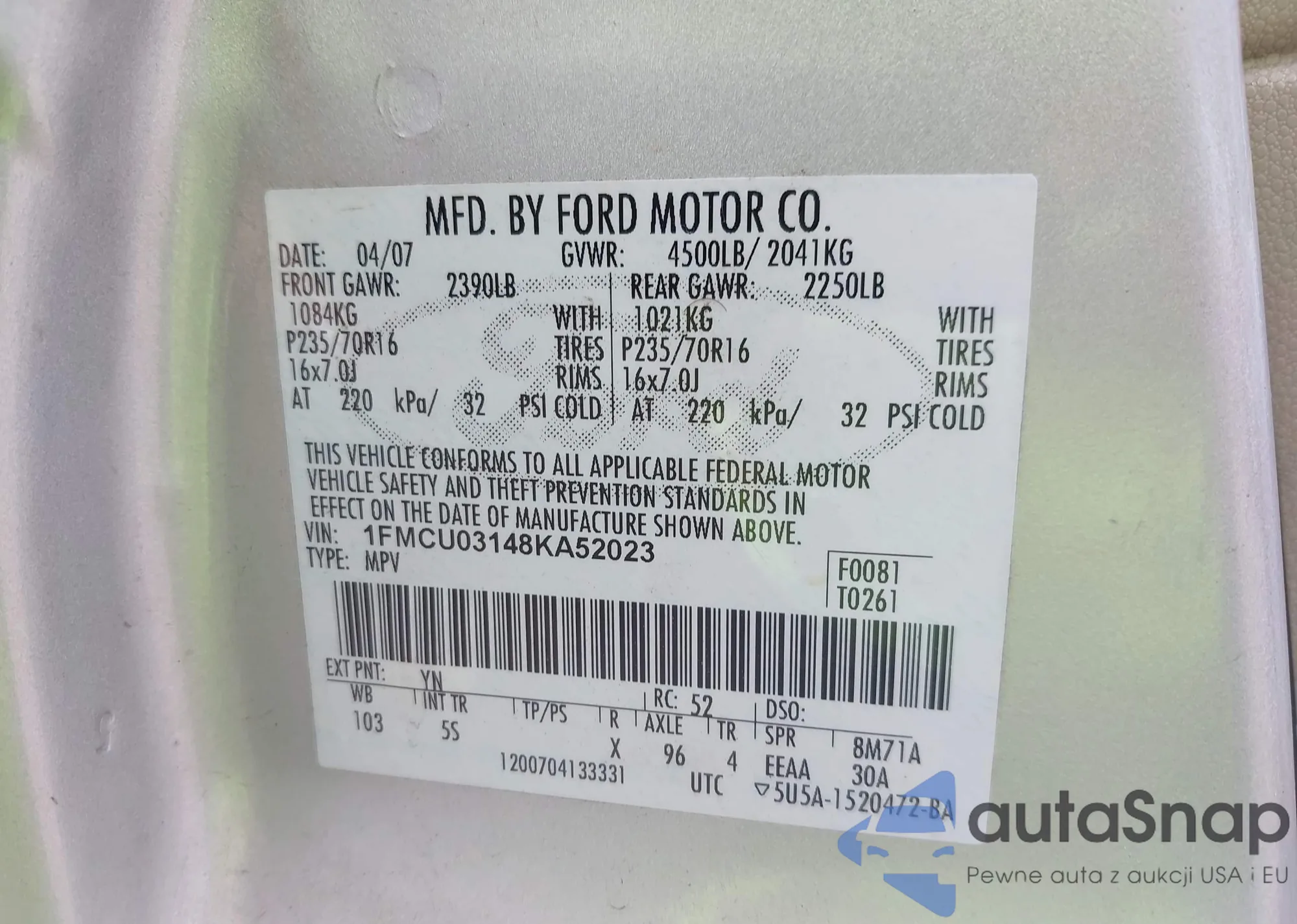 VIN: 1FMCU03148KA52023