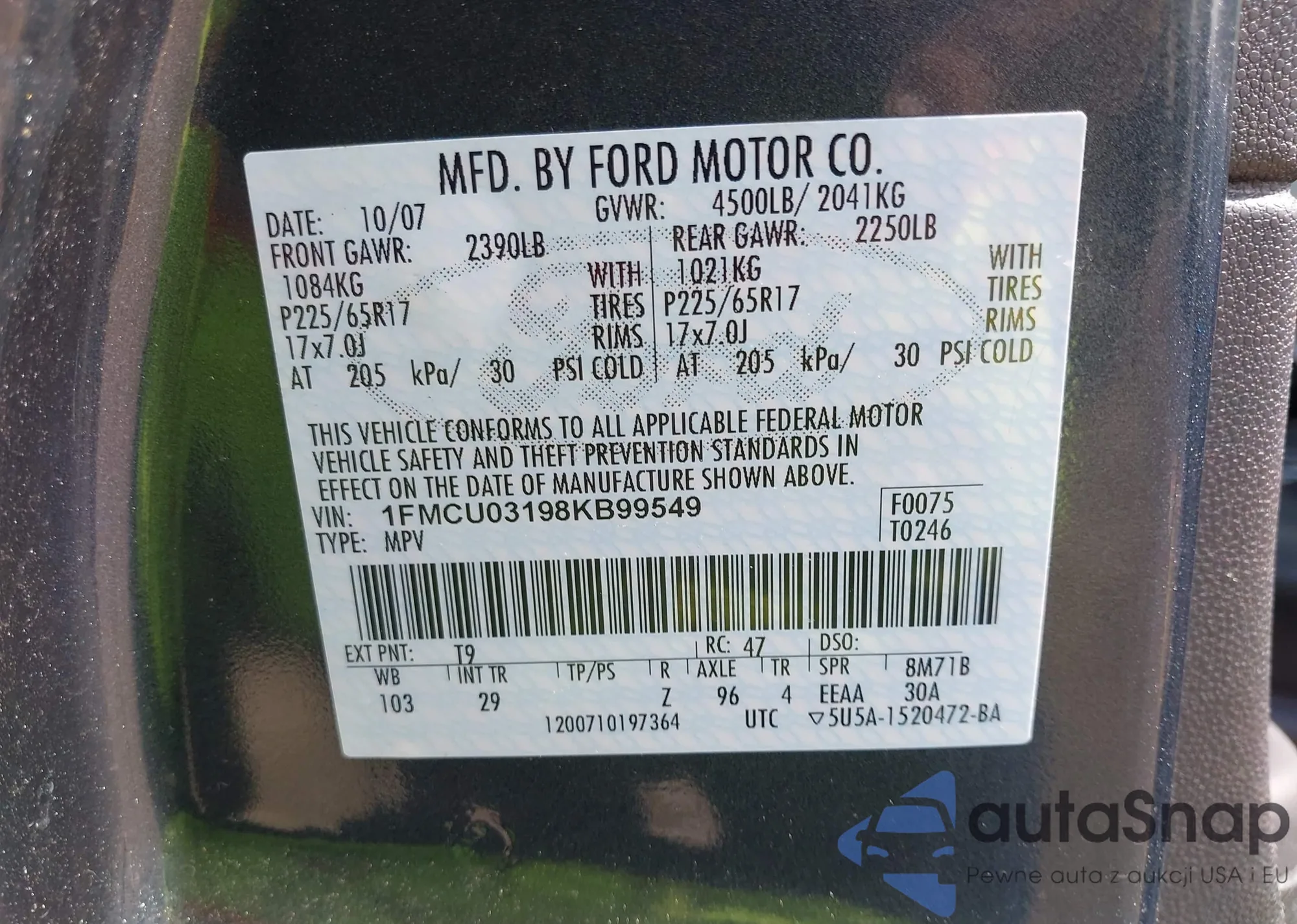 VIN: 1FMCU03198KB99549