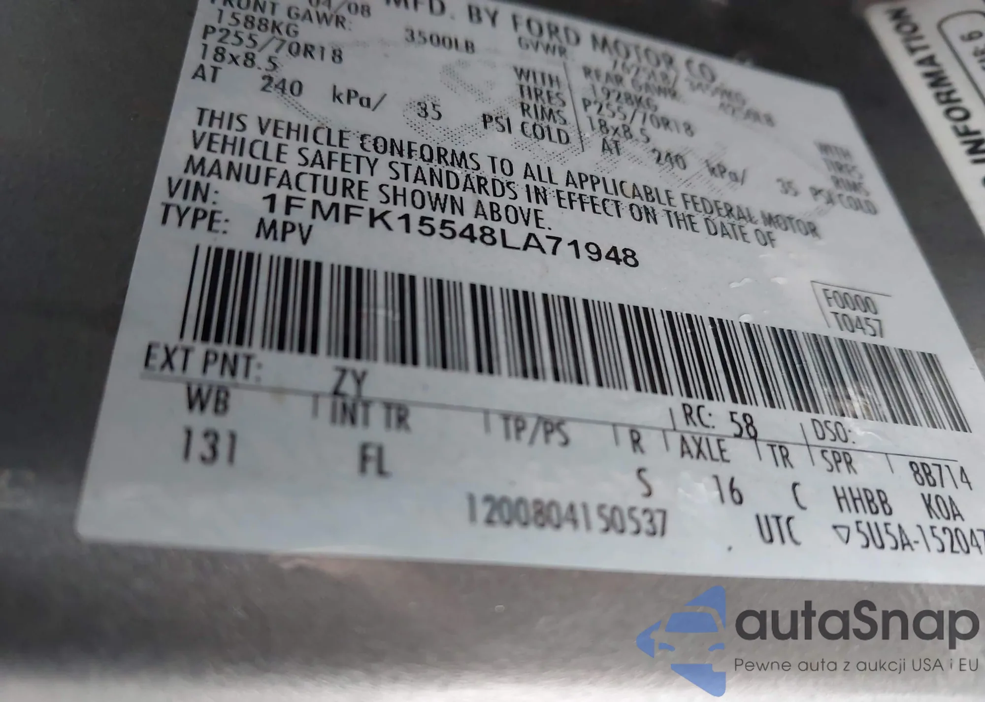 Samochód Ford Expedition 2008 (VIN 1FMFK15548LA71948) nie był wcześniej licytowany. Dokumenty są czyste, przebieg odpowiada lub jest niższy niż średnia rynku. Sprzedaje go firma ubezpieczeniowa – polecamy zakup. Dostawa do portu zajmie ok. 6–8 tygodni.