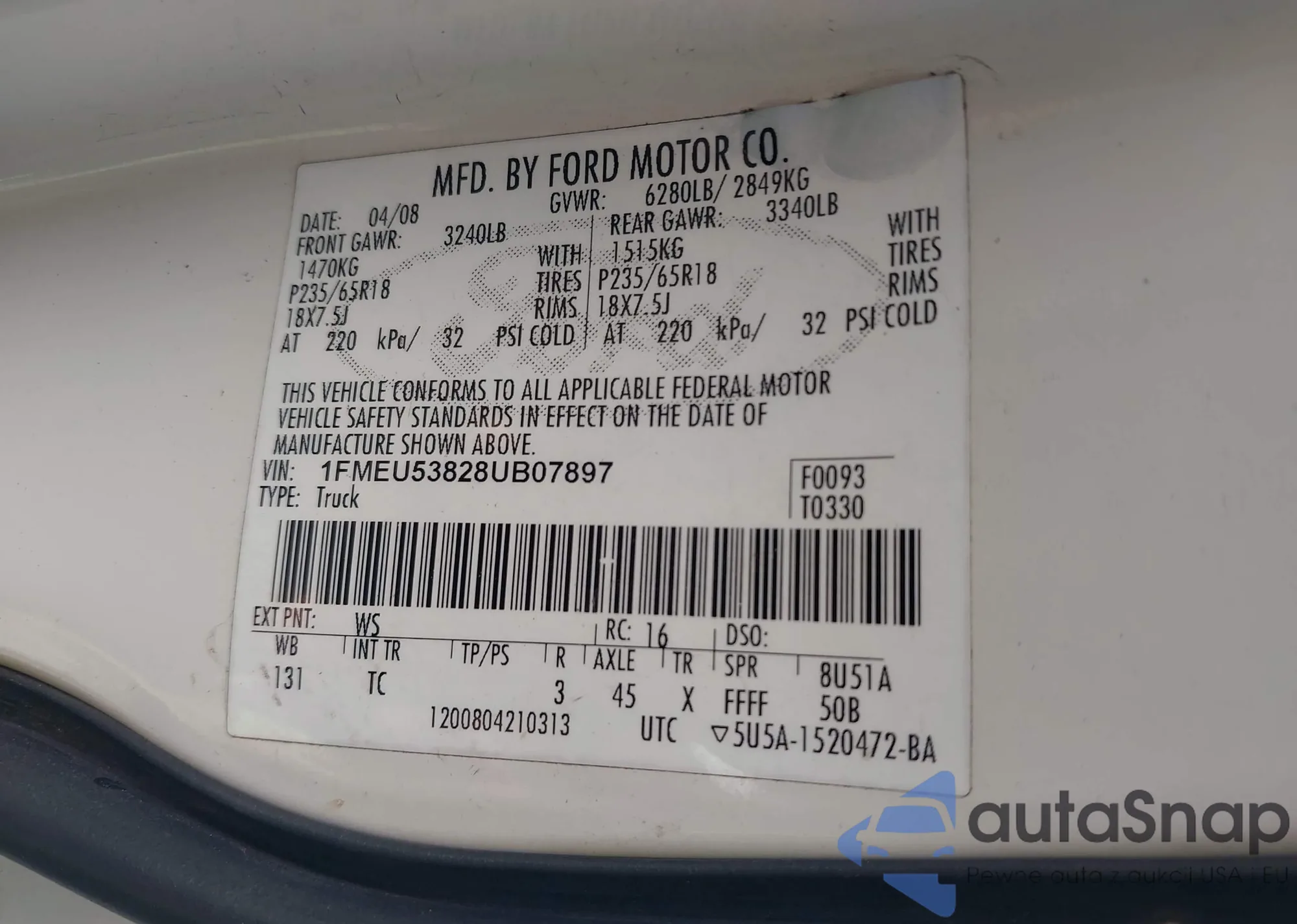 Samochód Ford Explorer Sport Trac 2008 (VIN 1FMEU53828UB07897) sprzedaje go niezweryfikowany sprzedawca. Zalecamy raport Carfax i potwierdzenie możliwości rejestracji pojazdu przed zakupem.