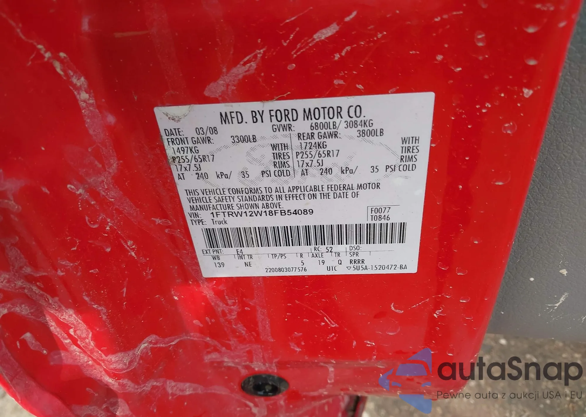 VIN: 1FTRW12W18FB54089