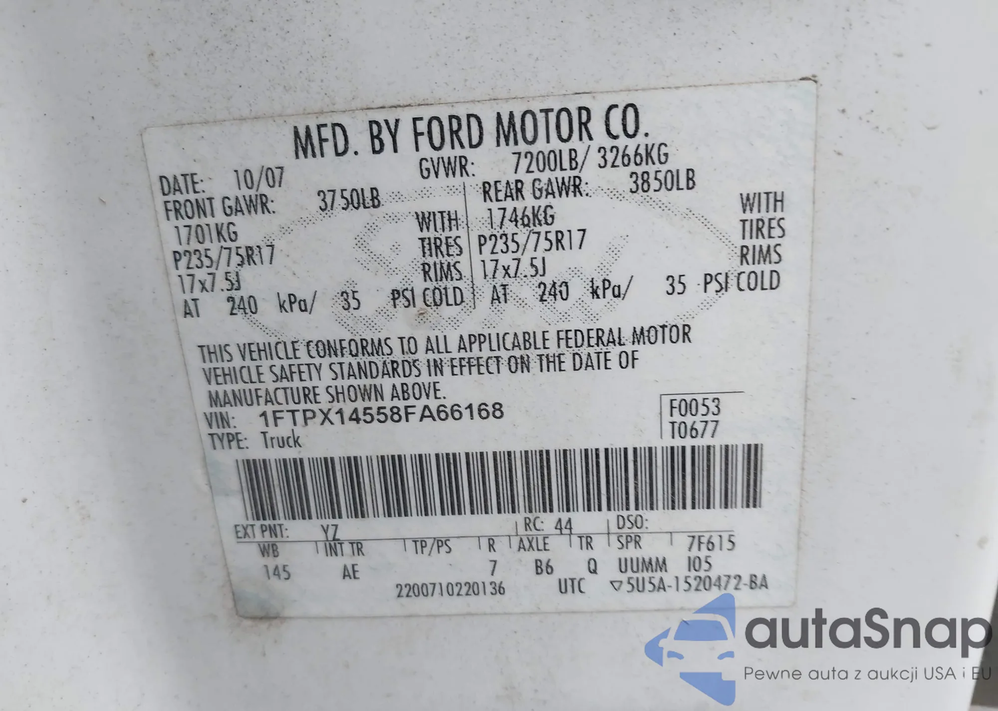 VIN: 1FTPX14558FA66168