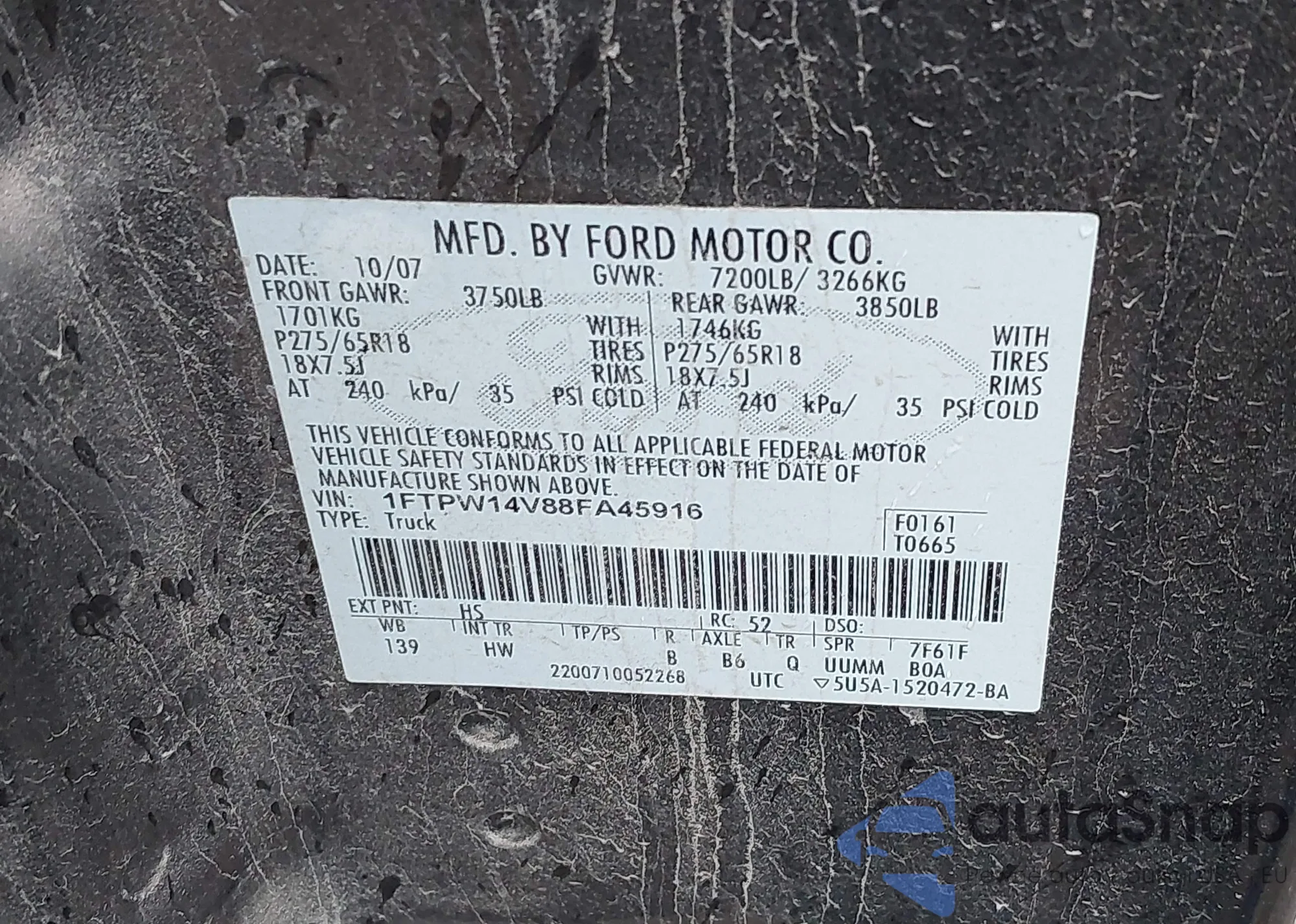 VIN: 1FTPW14V88FA45916