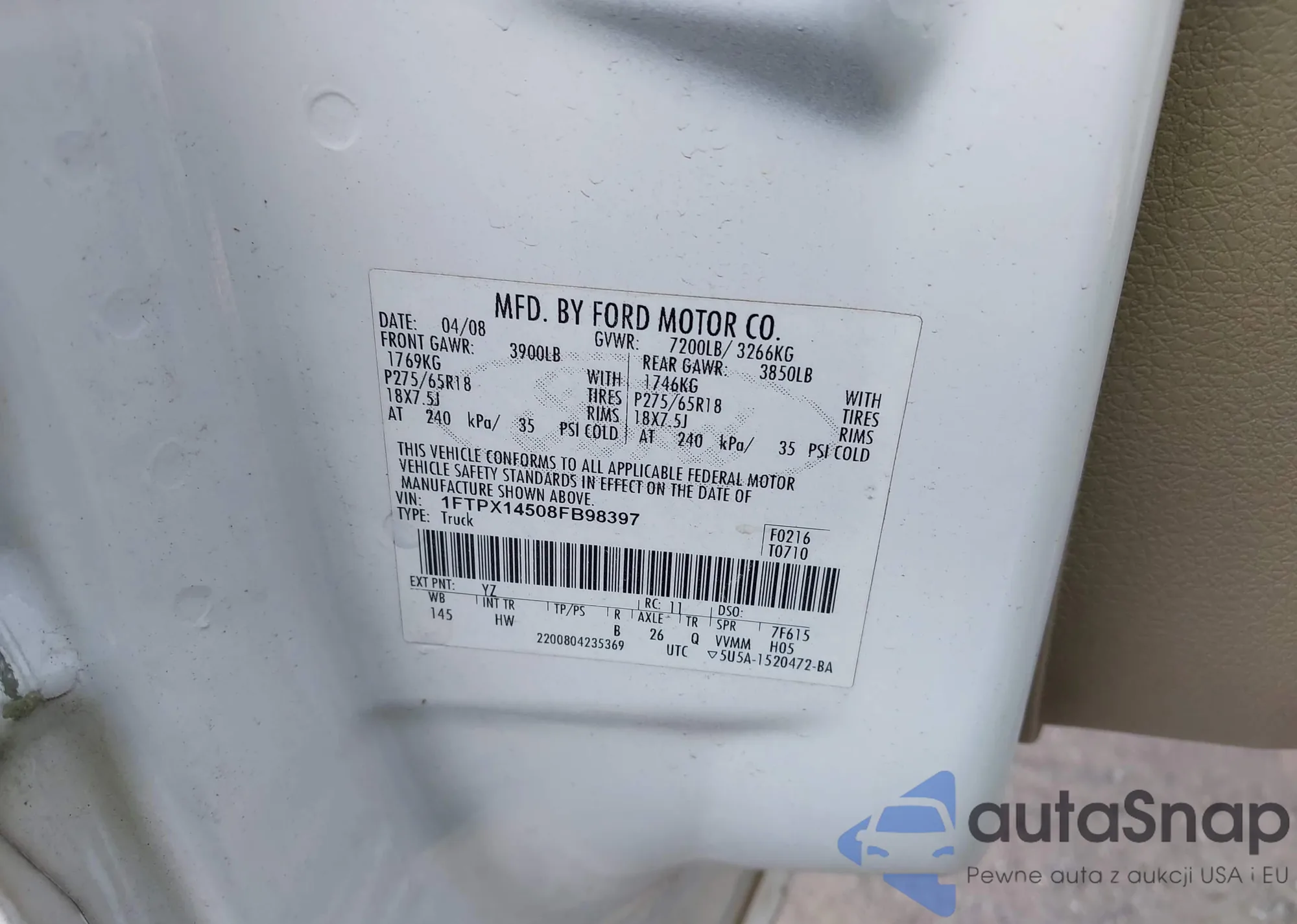VIN: 1FTPX14508FB98397