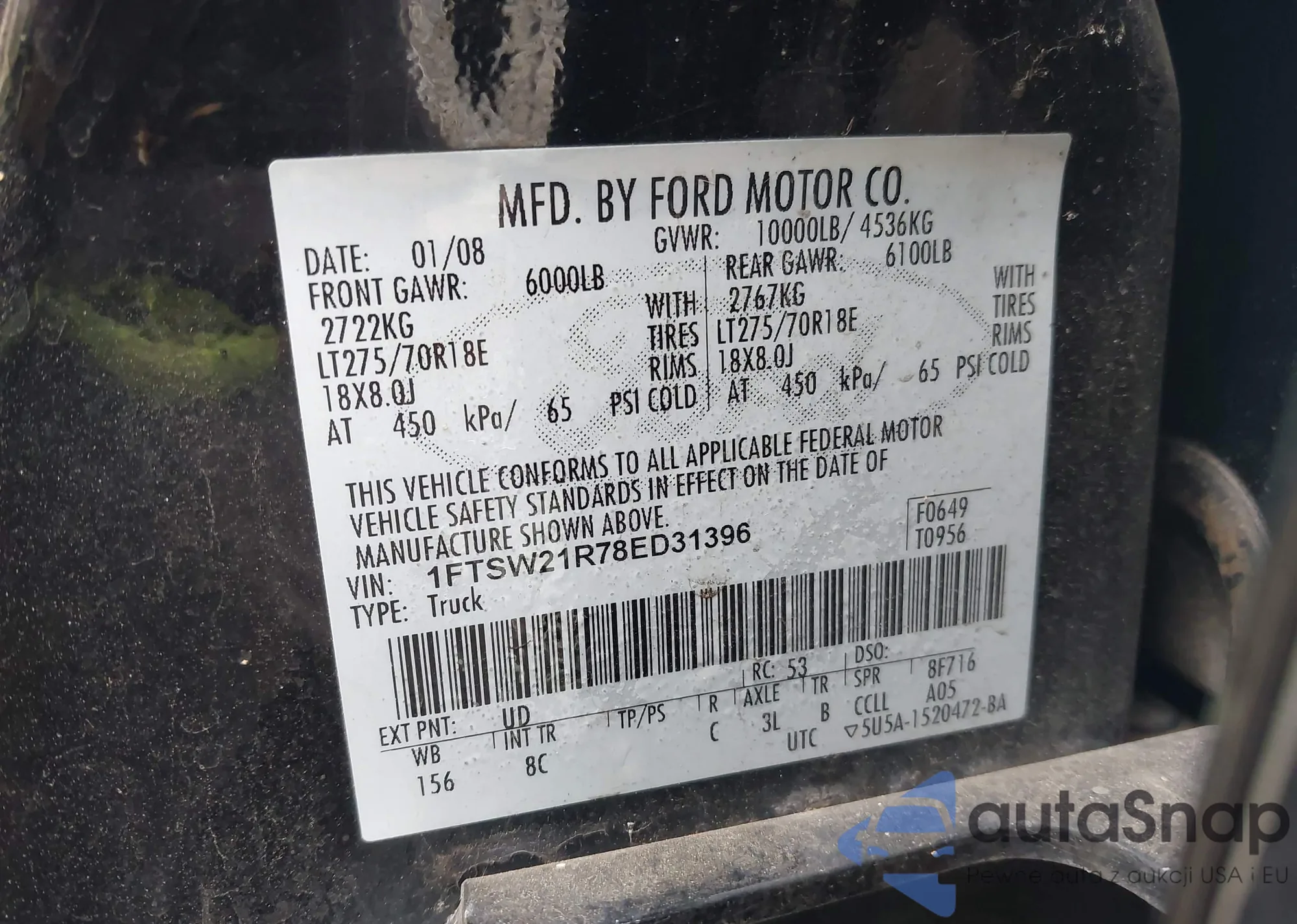 VIN: 1FTSW21R78ED31396