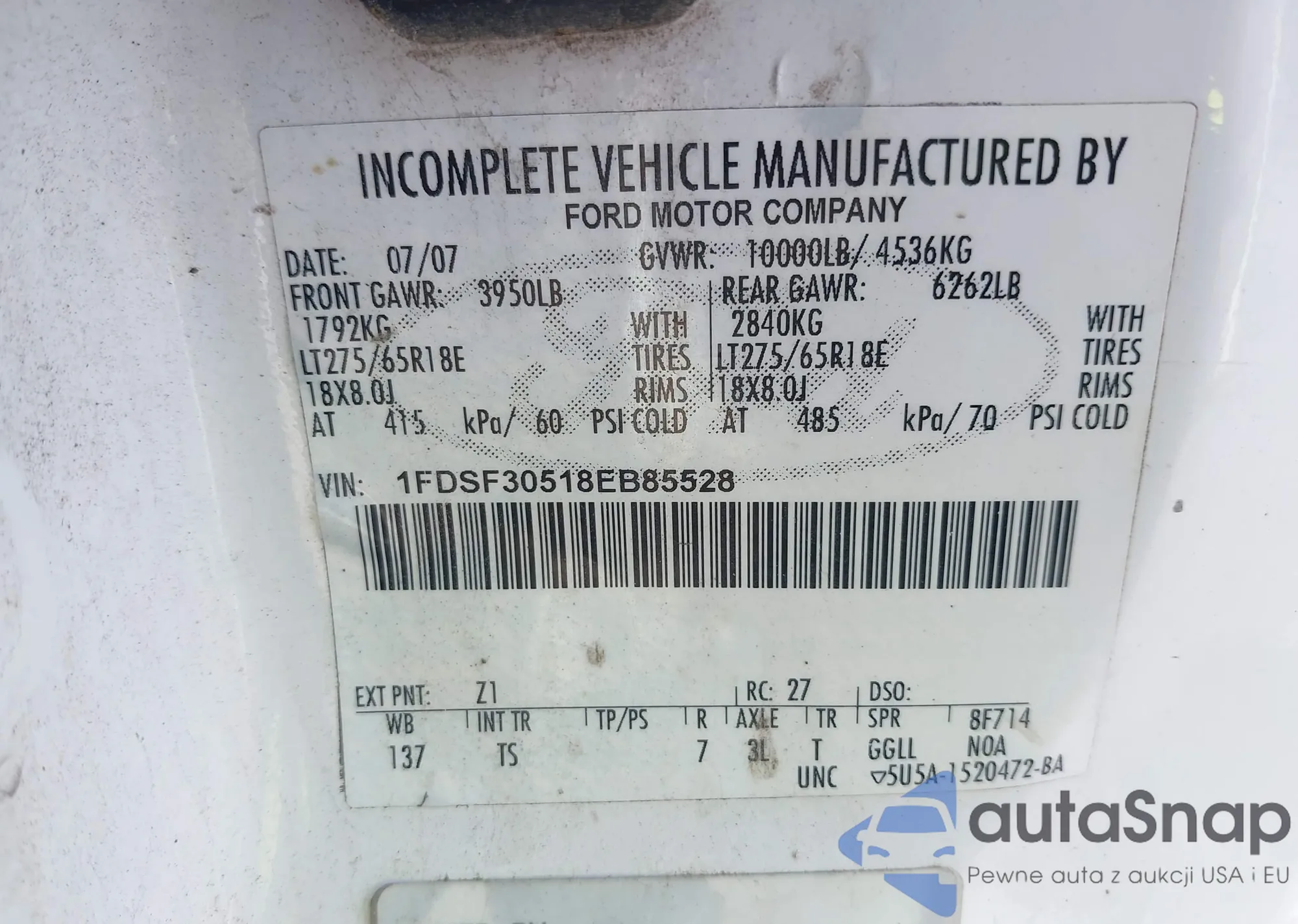 • VIN: 1FDSF30518EB85528
