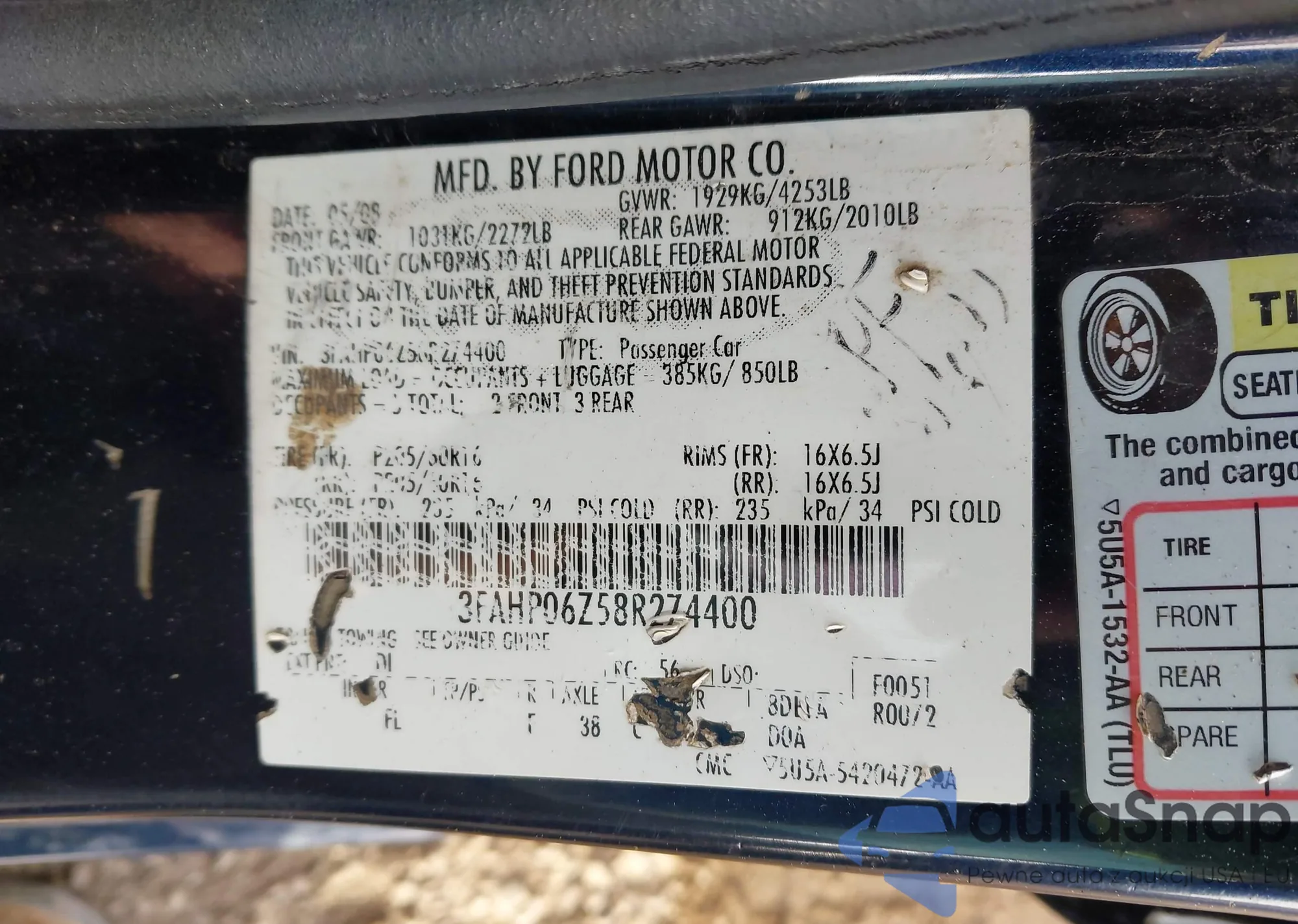 VIN: 3FAHP06Z58R274400