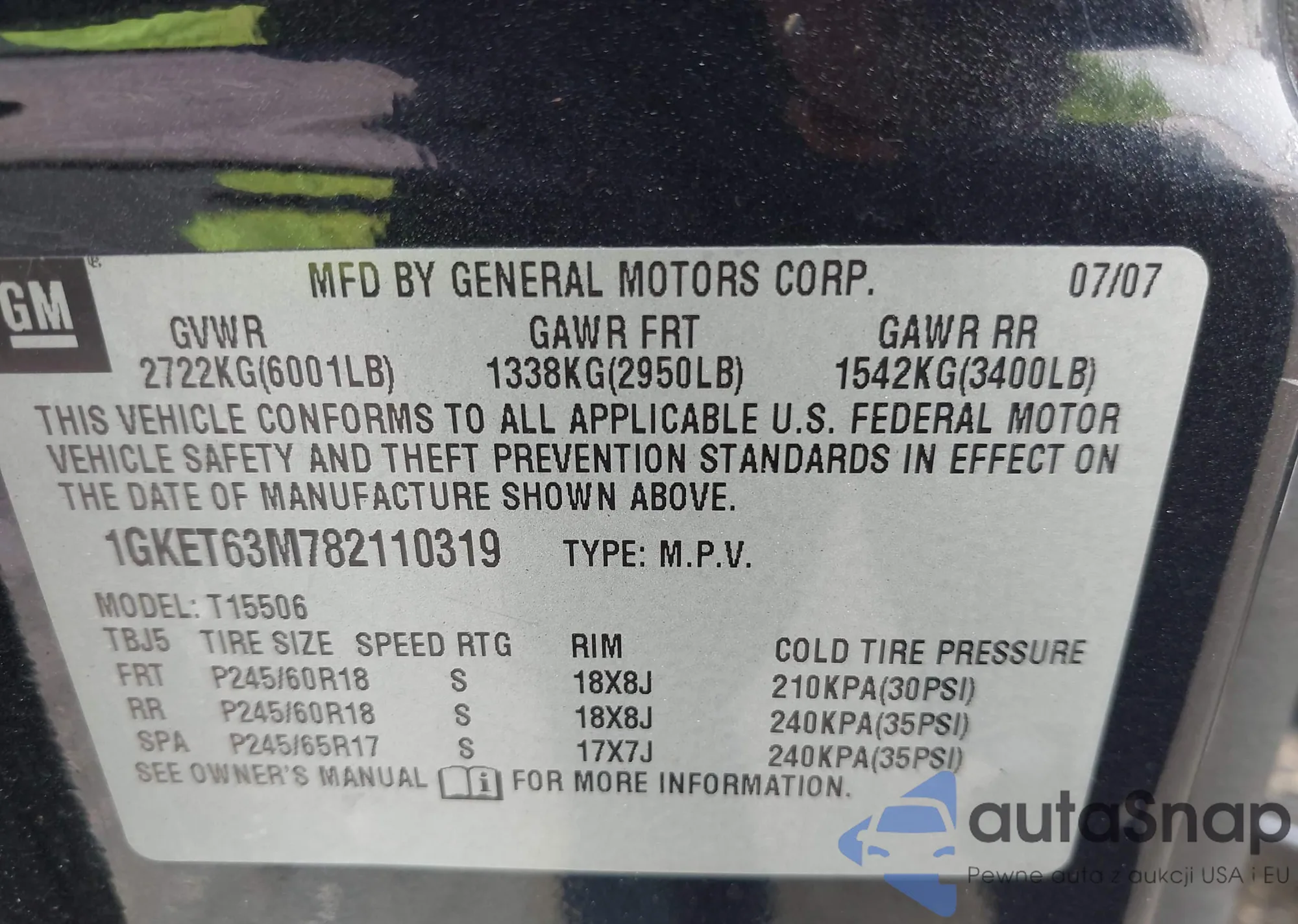VIN: 1GKET63M782110319