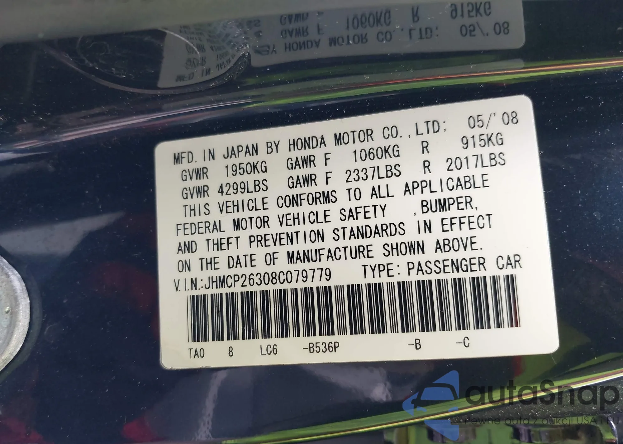 VIN: JHMCP26308C079779