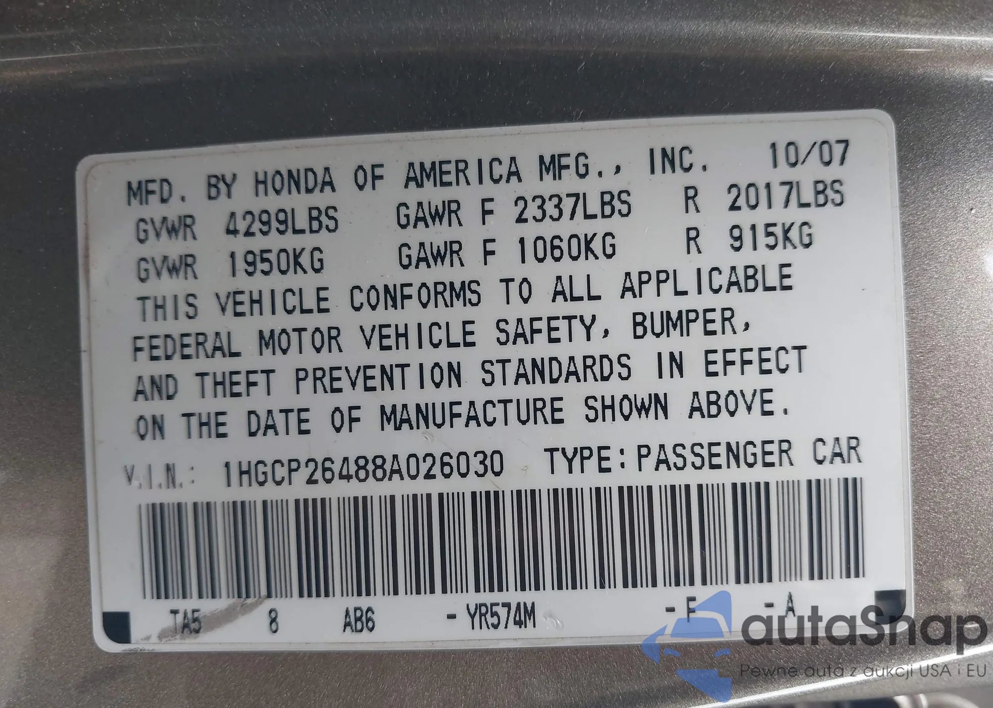 VIN: 1HGCP26488A026030