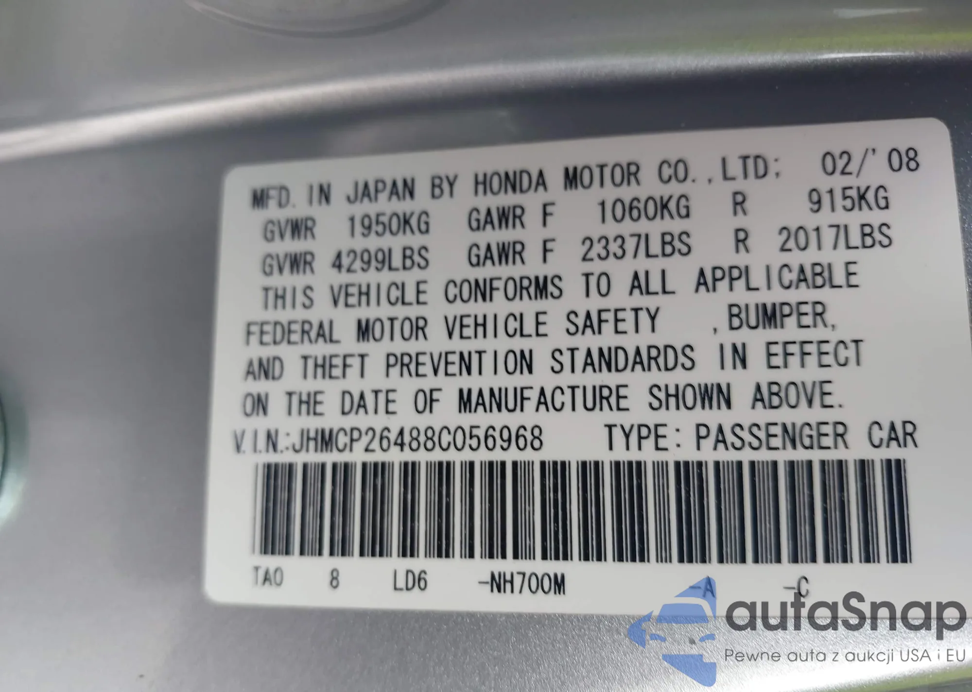 VIN: JHMCP26488C056968