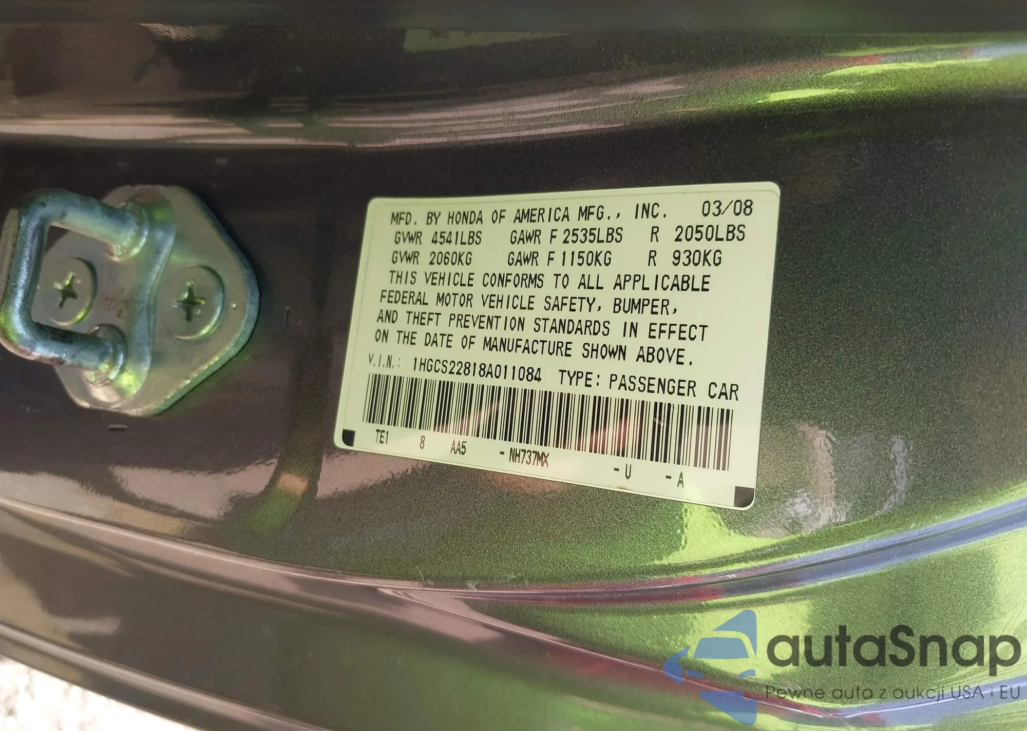 VIN: 1HGCS22818A011084