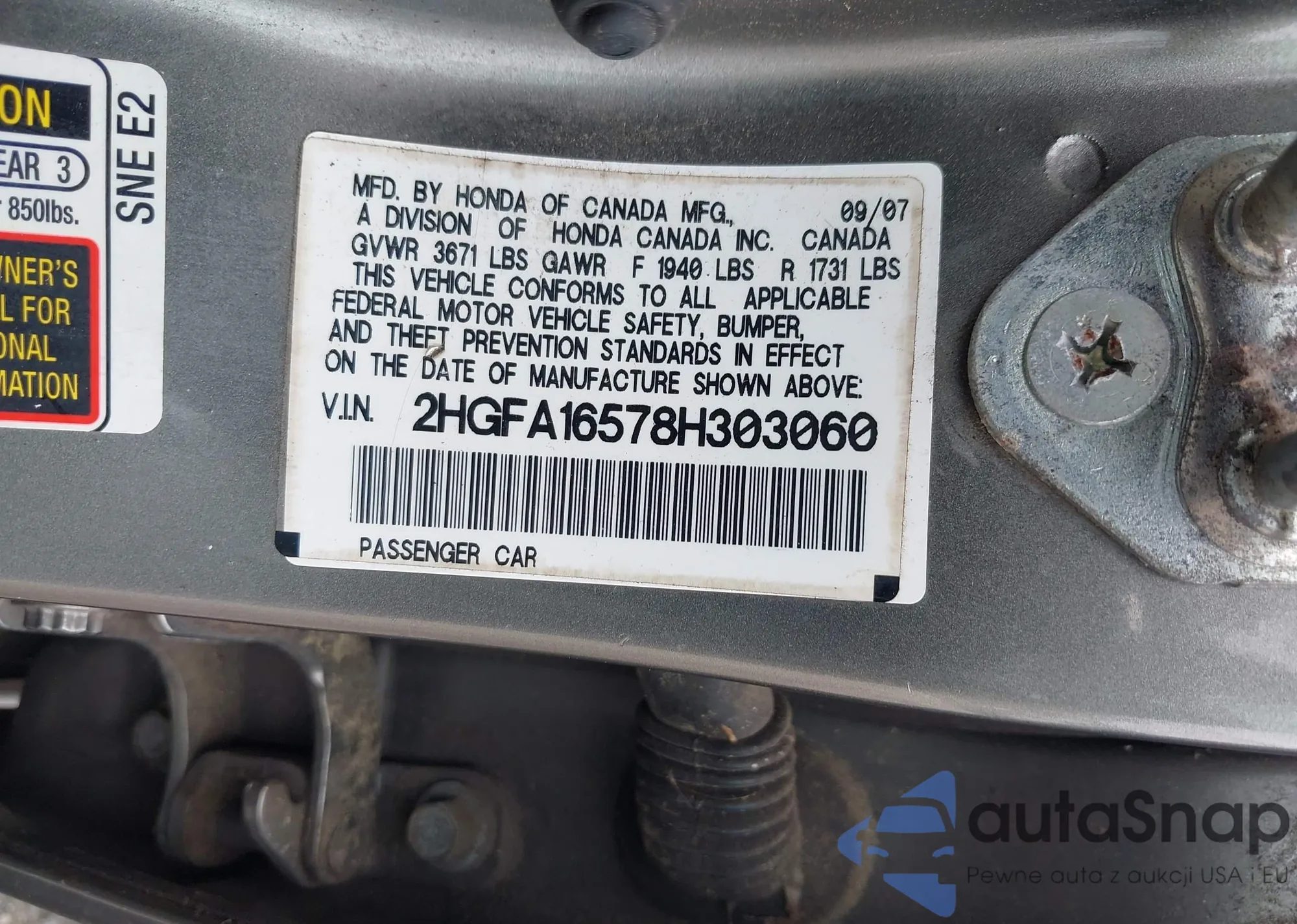 • VIN: 2HGFA16578H303060