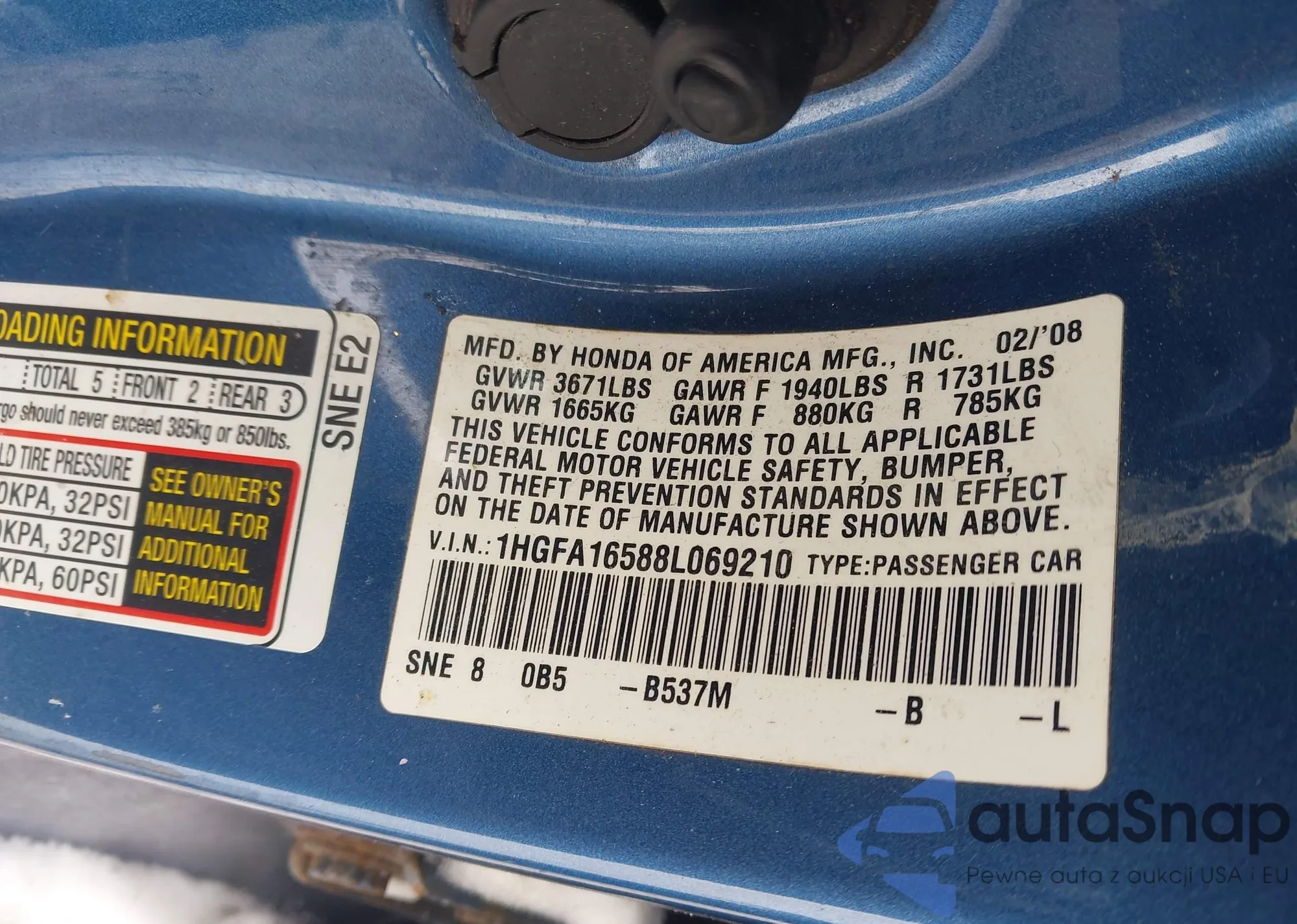 VIN: 1HGFA16588L069210