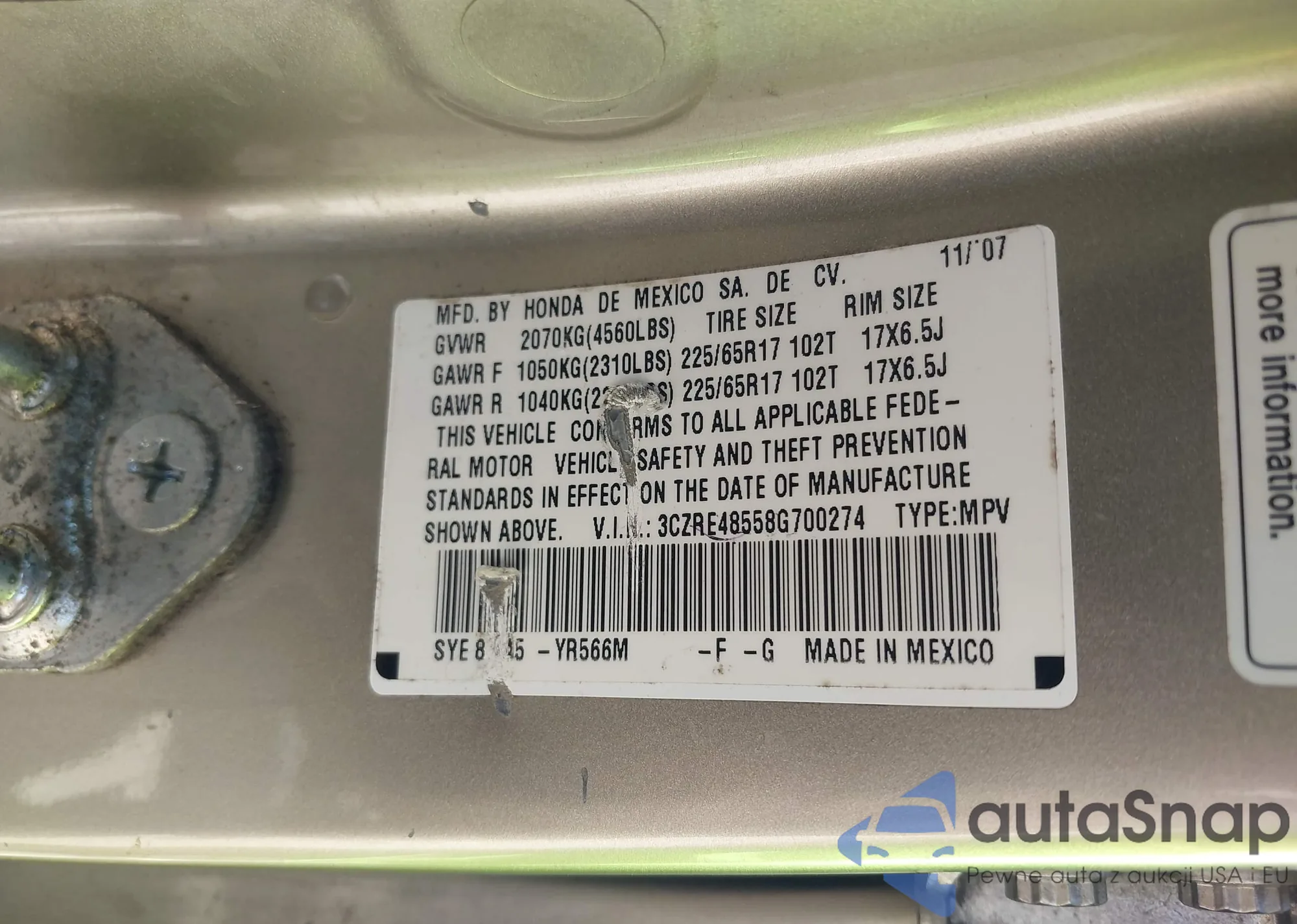 VIN: 3CZRE48558G700274