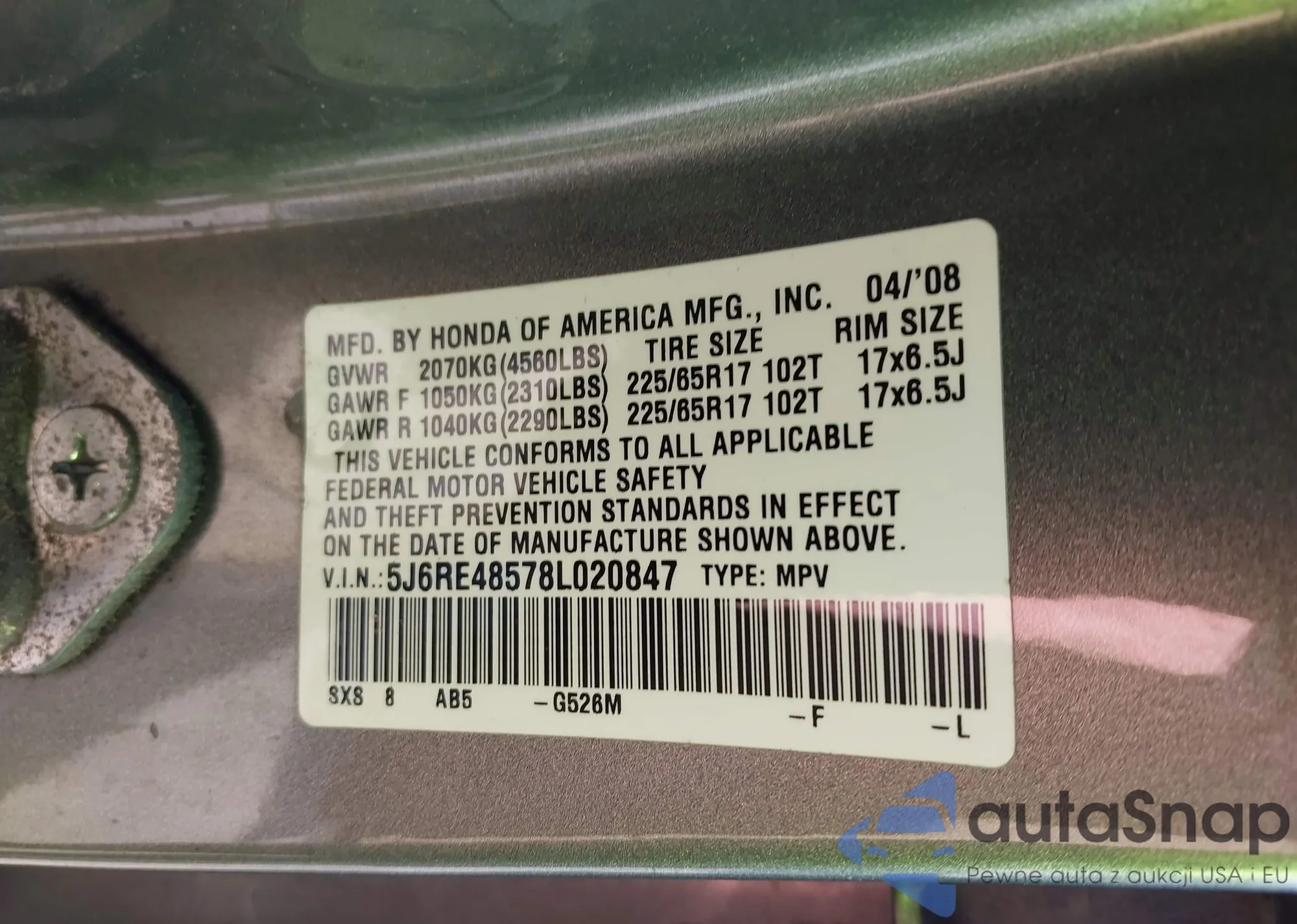 VIN: 5J6RE48578L020847