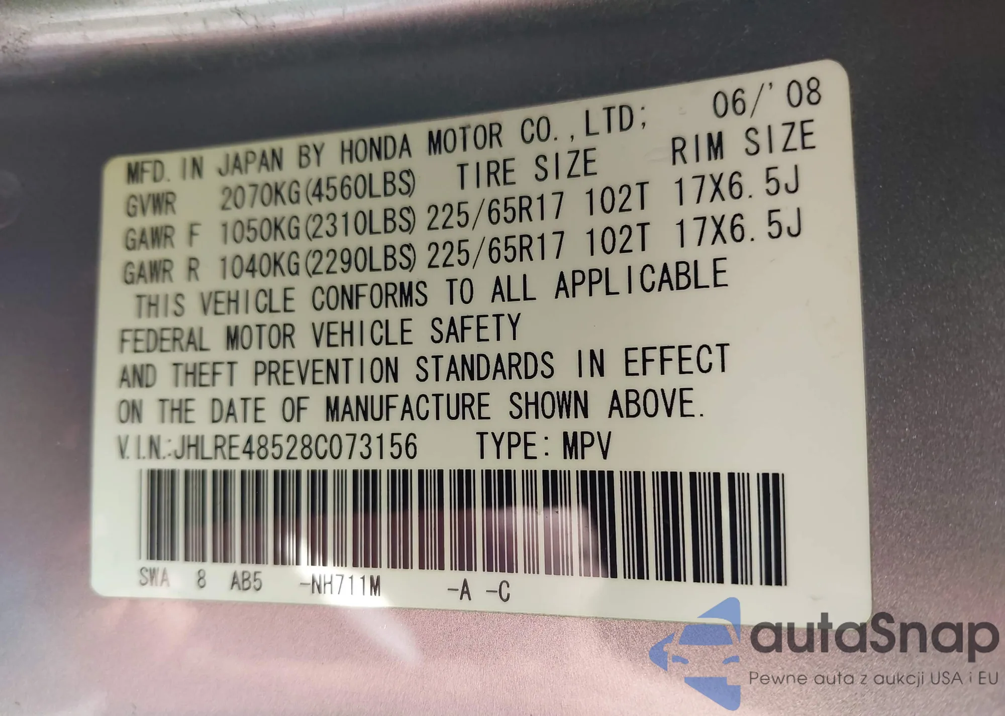VIN: JHLRE48528C073156