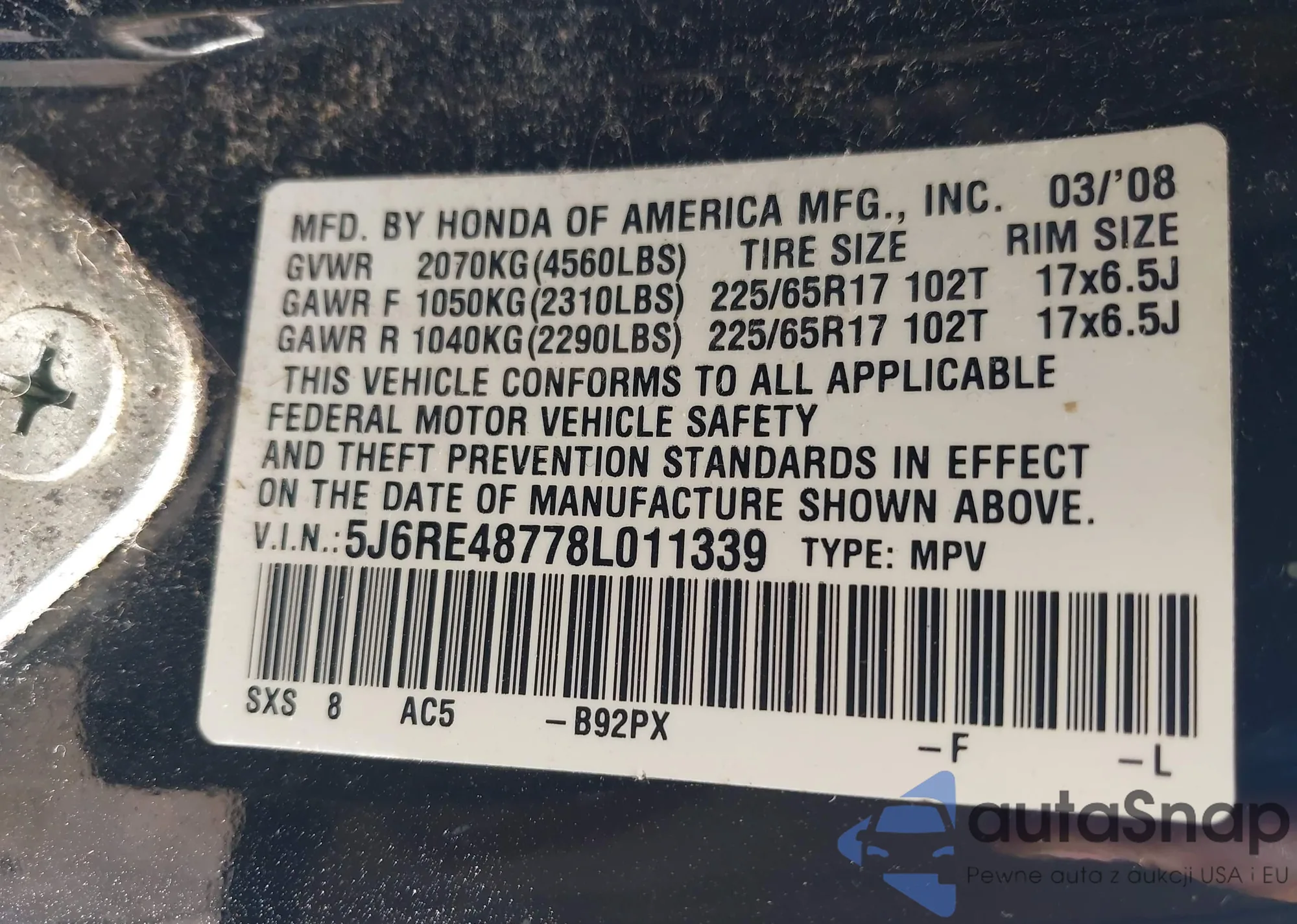 VIN: 5J6RE48778L011339