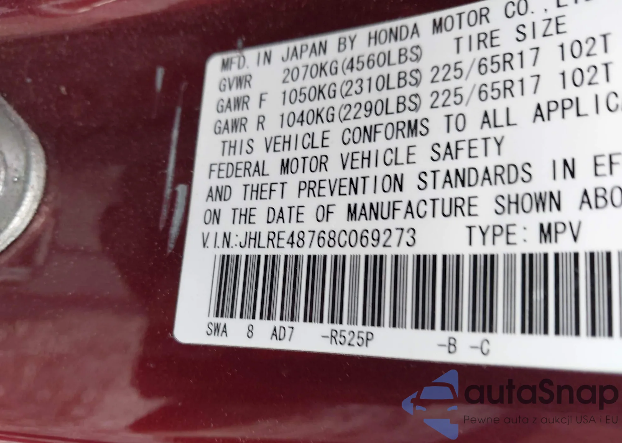 VIN: JHLRE48768C069273